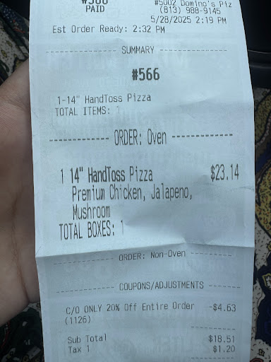 Read moreThis is THE WORSE DOMINOS I EVER ORDERED FROM ! I order delivery for my family the other night , food was delivered by a nice delivery driver . However the food was horrible , one of pizzas was messy looked like they just threw it together , i ordered cinnamon sticks they were a little burnt and had no cream cheese icing to go with them . I called the manager gave me attitude because of there mess up , said she would send a driver to me with the sauce and hung up on me . 2 hours went by and nobody came , called back spoke to another quote on quote manager and she was also rude she wanted to give me a credit and I asked for a refund , when I wouldn’t take the credit she hung up on me , I called back asked for the General manager and corporate number they claim to not have it . I called the next day to speak to the GM and the girl that answered said she would transfer me to the office phone and she hung up on me . I will be going up there but I’m calling corporate as well I want a full refund for my whole order because had to reorder from a whole different pizza place just to have a descent dinner with my family . And I work at a restaurant so i understand what customers service is , you need some one else running this store because the quality and service...