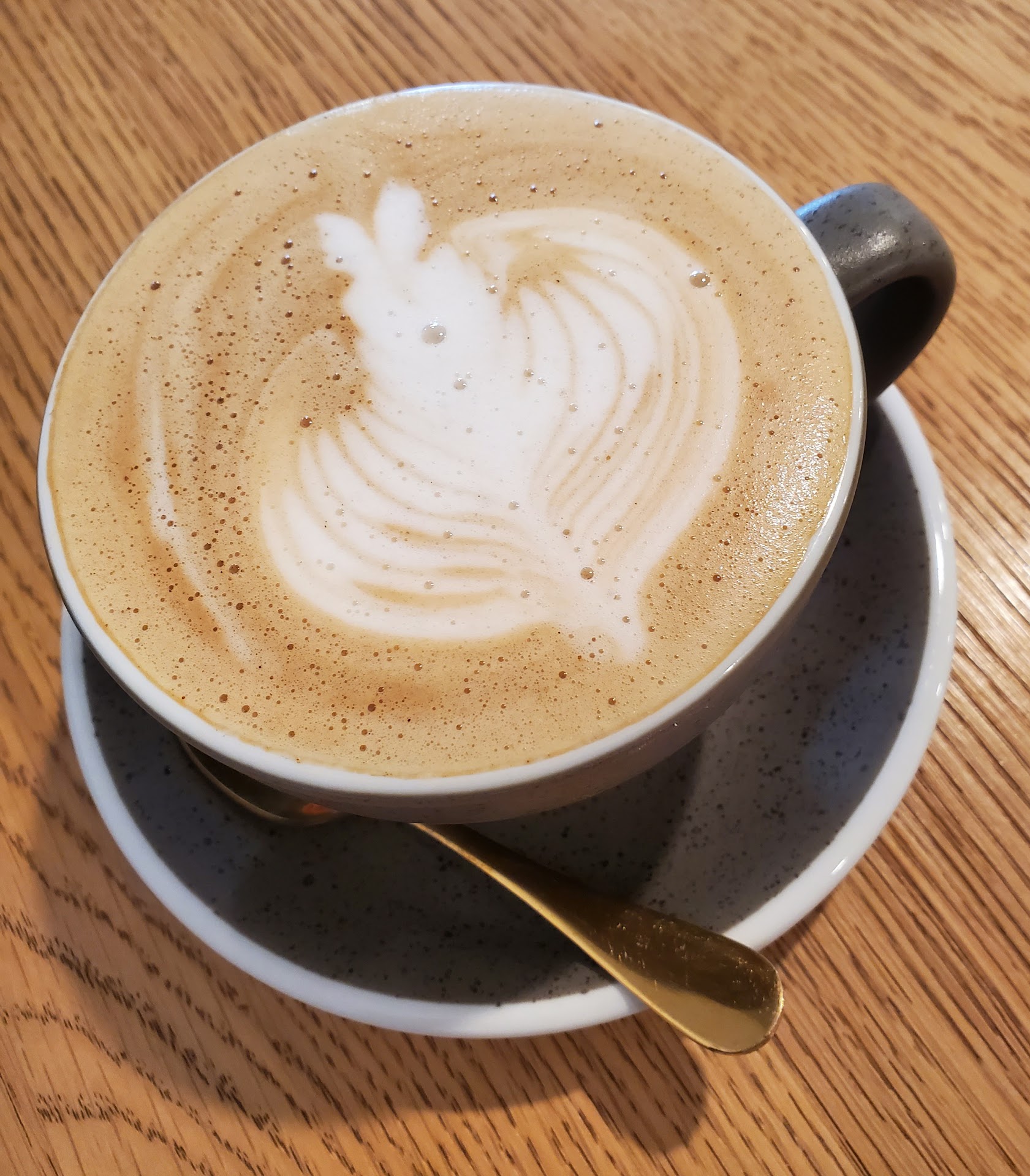 You place your order at the counter, and they bring it out to your table when it's ready. Our barista was wonderful. She had quite a few people there, but seemed to handle the flow very well. There were a few students or remote workers using their Wi-Fi during the morning hours. I'm not sure if it's this quiet later in the day. It was very relaxing, as well as the soft music.