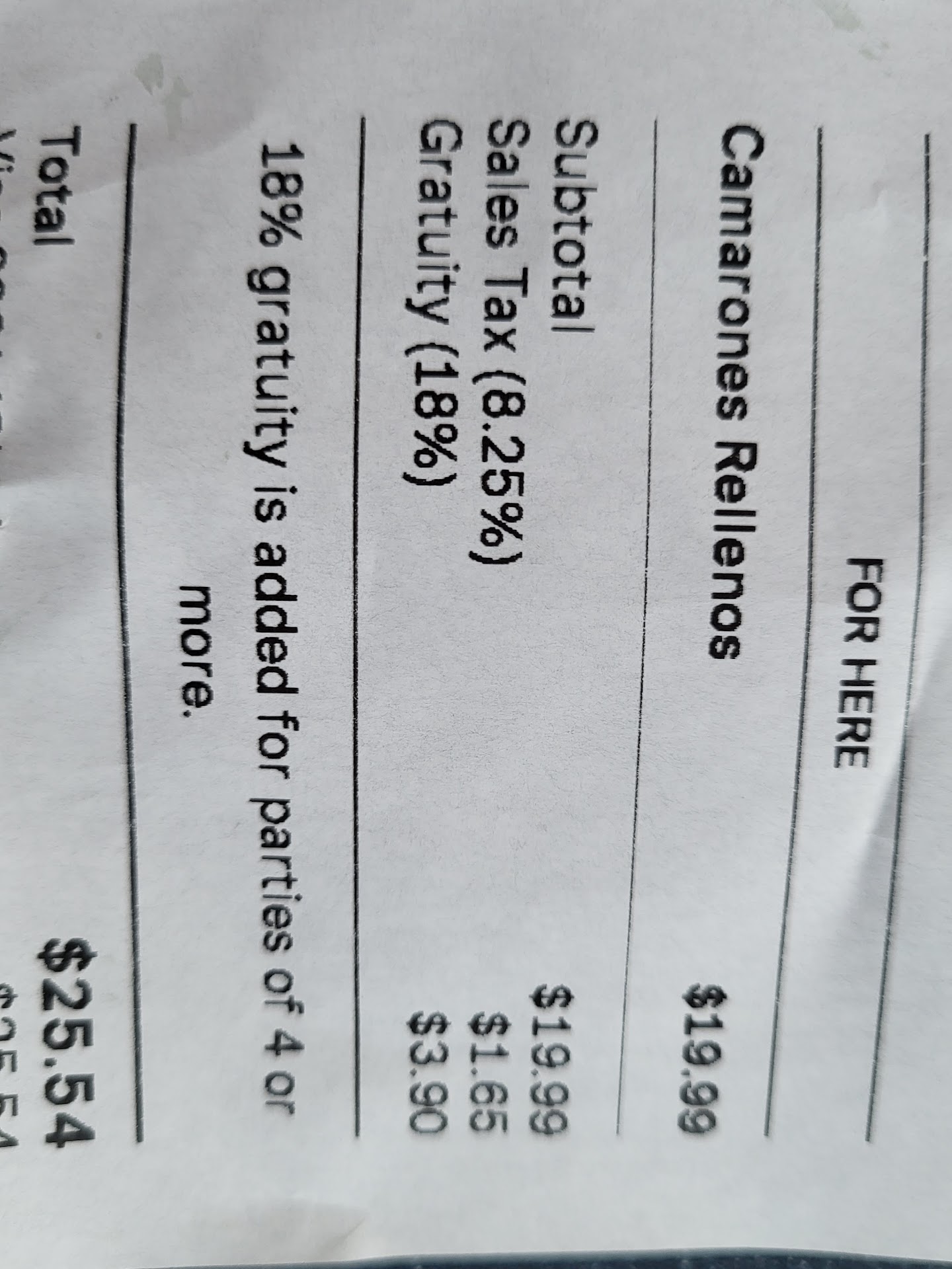 Ordered 6 pieces of bacon wrapped shrimp with rice for pick up. Was highly overpriced at $19.99 already. Not good enough tasting to validate that price either. Then when I arrive to pick my food up and pay, there is an automatic 18% tip that i did not aggree to. After reviewing the receipt, it reads "18% gratuity is added for parties of 4 or more."