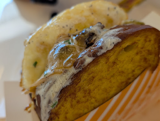 Read moreAs soon as I walked in I was greeted with a smile and excellent service by the owner and staff. Can be a little pricey depending on what you get. But even with the perceived notion of "it's just an egg sandwich" in my opinion it's well worth the price. Perfectly made eggs with delicious bread and additions. It's like the equivalent to finding that one bomb food truck. I highly recommend checking this place out and giving support! I got the korean style with the fluffy tots (that were indeed, fluffy) with siracha aoli. A straight up...