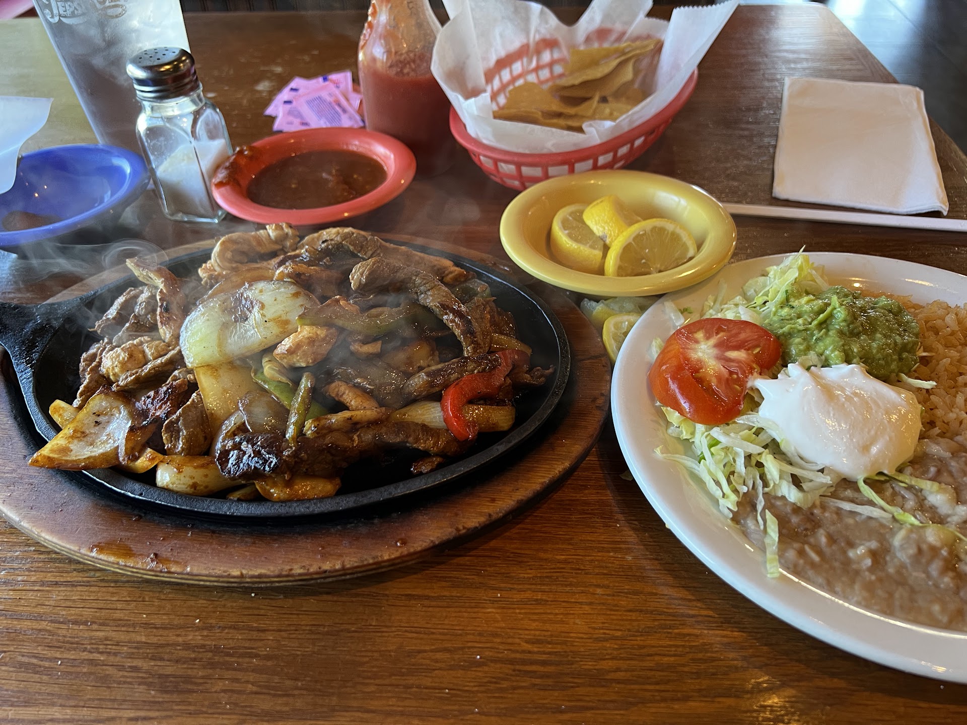 Read moreWent in wanting some tasty fajitas. By the entrance is a sign saying to please wait to be seated. I waited for what seemed an eternity to be greeted and then seated, in an almost empty restaurant. As I sat down a young man brought me chips and salsa within seconds. I thought to my self alright let’s get this party started. Nope. Waited another 5-10 minutes before waitress showed up to take my drink order. Keep in mind restaurant is still almost empty. She was prompt and cordial in getting my drinks. I went ahead and ordered the Texas fajita plate. This comes with fajitas, chicken fajitas and shrimp. When food was brought out presentation was great but that’s about it. It looked good. Fajitas were tough and rubbery. I don’t think they were even fajitas maybe some other cut of beef. Chicken was dry. The only highlight of the plate were the shrimp. They were plump and juicy and took their marinade or seasoning well. I was picking through the plate for the shrimp. They were that good. The plate was also served with a side of rice and beans . Some guacamole, sour cream and lettuce and a tomato. Sides were ok nothing special. The only thing here was the tomato , it was all wilted and sad looking. If they had omitted it, it would not have been missed. Based on this plate I would not be back. But they have other plates and maybe you’ll...