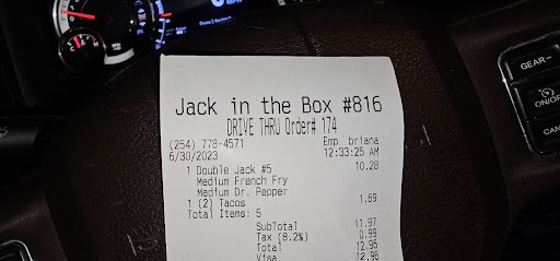 Read moreWe have had bad experiences with Jack in the box in the past ranging anywhere from the food not living up to expectations,(we have easy low expectations), to not getting the order right anytime we chose them as our destination for food. We decided to give them another chance this night and they did much better than previous experiences. The service was a little slow for fast food drive through, but we are patient and the lady st the window did apologize for this and was super sweet. Shout out to her. The food order was done correctly this time, no complaints or mistakes there. The food taste was good and satisfying, with one exception that we could.overlook but wanted to mention. The toasted bread that comes on a sourdough burger should be toasted, my wife's was hardly toasted at all. Although she ate it, it was not the same satisfaction that comes with that crisp toasted bun feeling you get with a real good toasted sourdough jack experience. Other than that the order was right and we were happy with it. I'll be giving Jack in the box another try in the future so long as they continue to keep improving on the important things as getting the orders right and the food...