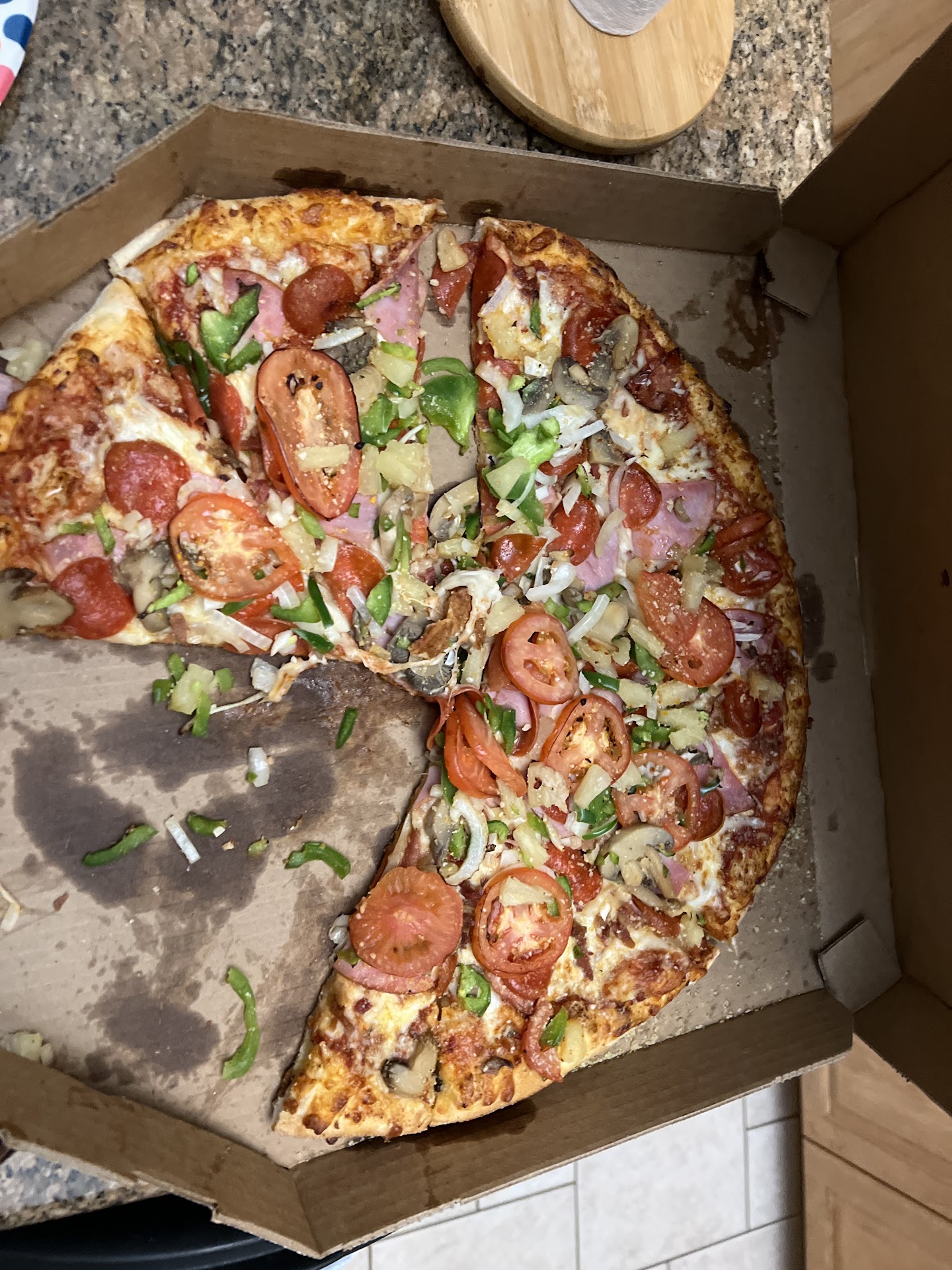 Were they just in such a rush that green olives looked like green peppers? And the super sparse micro-bacon? And they couldn’t update cook the pizza properly? I spent $43 (with tip) on a pizza that I swear was on the same level as a frozen Red Baron and r Tombstone which I can get for $5 bucks and I can at least cook it properly.