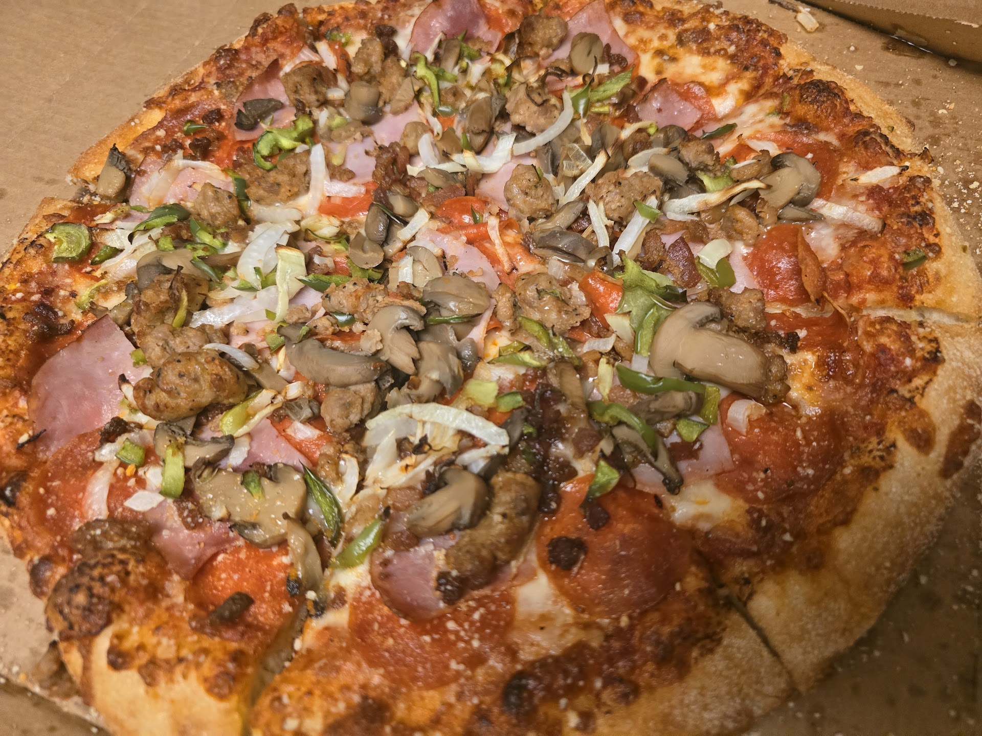 Read moreWe have noticed a steady decline in the quality of this place. We frequently order delivery and when we started off it was definitely 5 stars. At 1st they had a cheese overload with very fresh stretchy mozzarella, with abundant high quality toppings and now they have succumbed to mediocre run of the mill chain pizza quality. It's about as bad as Little Caesars or even worse mall pizza. We noticed in particular the ham quality has gone downhill when initially they used to give generous amounts of higher quality ham and now it has a very mediocre flavour at best and they are very skimpily portioned. It looked almost like they used the topping amount for a small pizza and put on a medium crust and tried to spread it out thin. The pizza looked like it was hastily cut in uneven slices. It's very clear whoever's in charge there is not happy about what they're doing and the customer still needs to pay full price for a subpar quality product. Guess we will have to go back to frozen pizza or maybe check out the new Blaze...