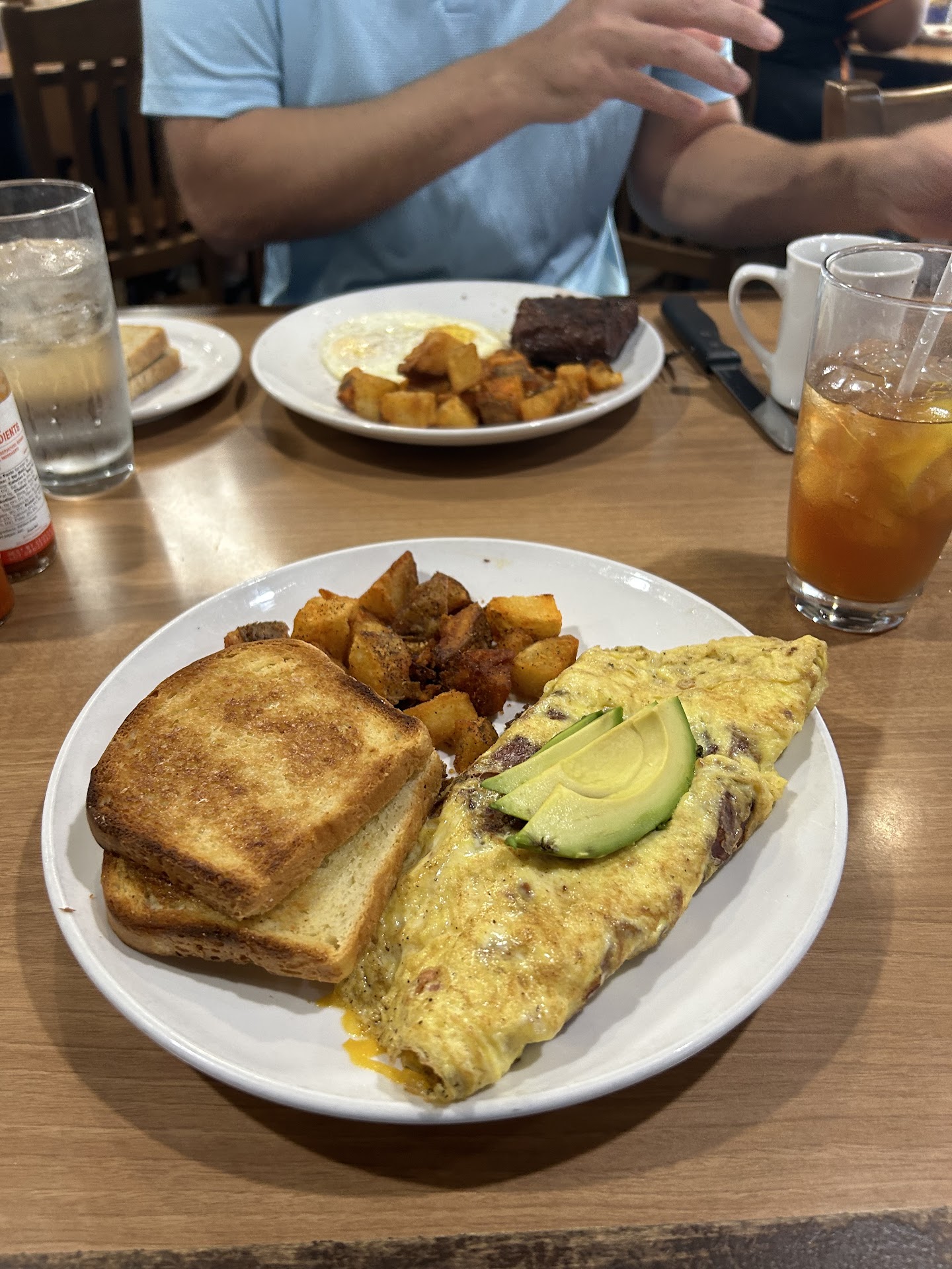 Read moreOne star is even too much!!! The first time we ate there it was mediocre (at best) but we like to give places a second change. HUGE MISTAKE! My husband and I had the WORST meal we’ve ever had in our life. Let’s start with the wait times, it took almost 10 minutes just for the server to come over. Another 5 minutes just to get drinks. After placing the order another 35 minutes to get the food. I was in my scrubs and had to go to work after. It’s a Monday morning, not even a weekend. Once we got the food my omelette was barely warm and the bacon was raw! I mean raw like straight from the package. I was chatting and didn’t realize until it was in my mouth. I consider myself a lady but I was forced to spit it into my napkin. I was embarrassed but I had no choice. My husband steak was flavored horrible and so tuff he could barely cut it with the knife. His eggs were so over cooked to the point they were like rubber. The toast wasn’t even toasted. The potato’s were the only edible thing on either of our plates. 15 more minutes go by waiting for our waiter to bring the check. My husband had to go to the front just to ask to get the check. We both left nauseous and hungry after paying $39 for 2 breakfast (before tip). I don’t know how this place got such good reviews, it was so bad I don’t want to go to any restaurant for a while but will never go to that nightmare...