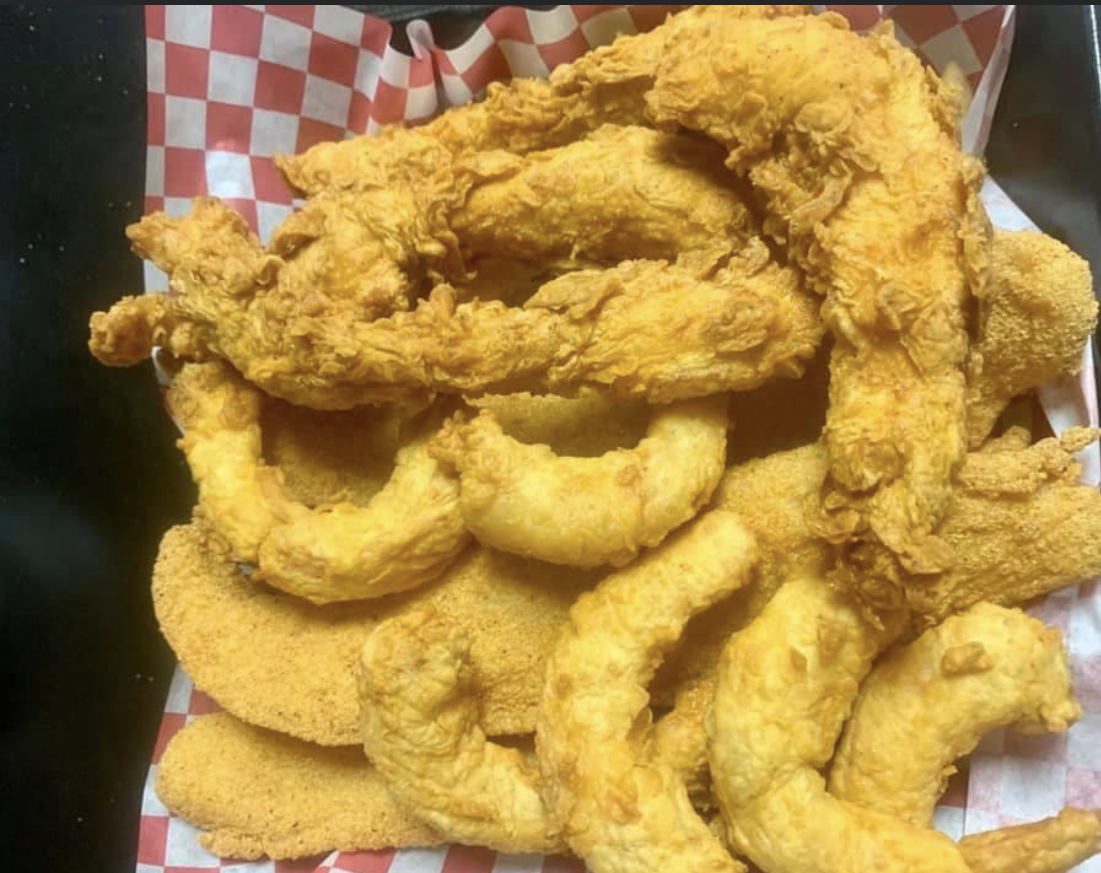 So, the Philly cheesesteak was ordered with fries, 6 count oyster basket with fries, macaroni and cheese, fried catfish basket combo with shrimp and oysters, 6 count chicken finger basket with fries, and beans and rice.