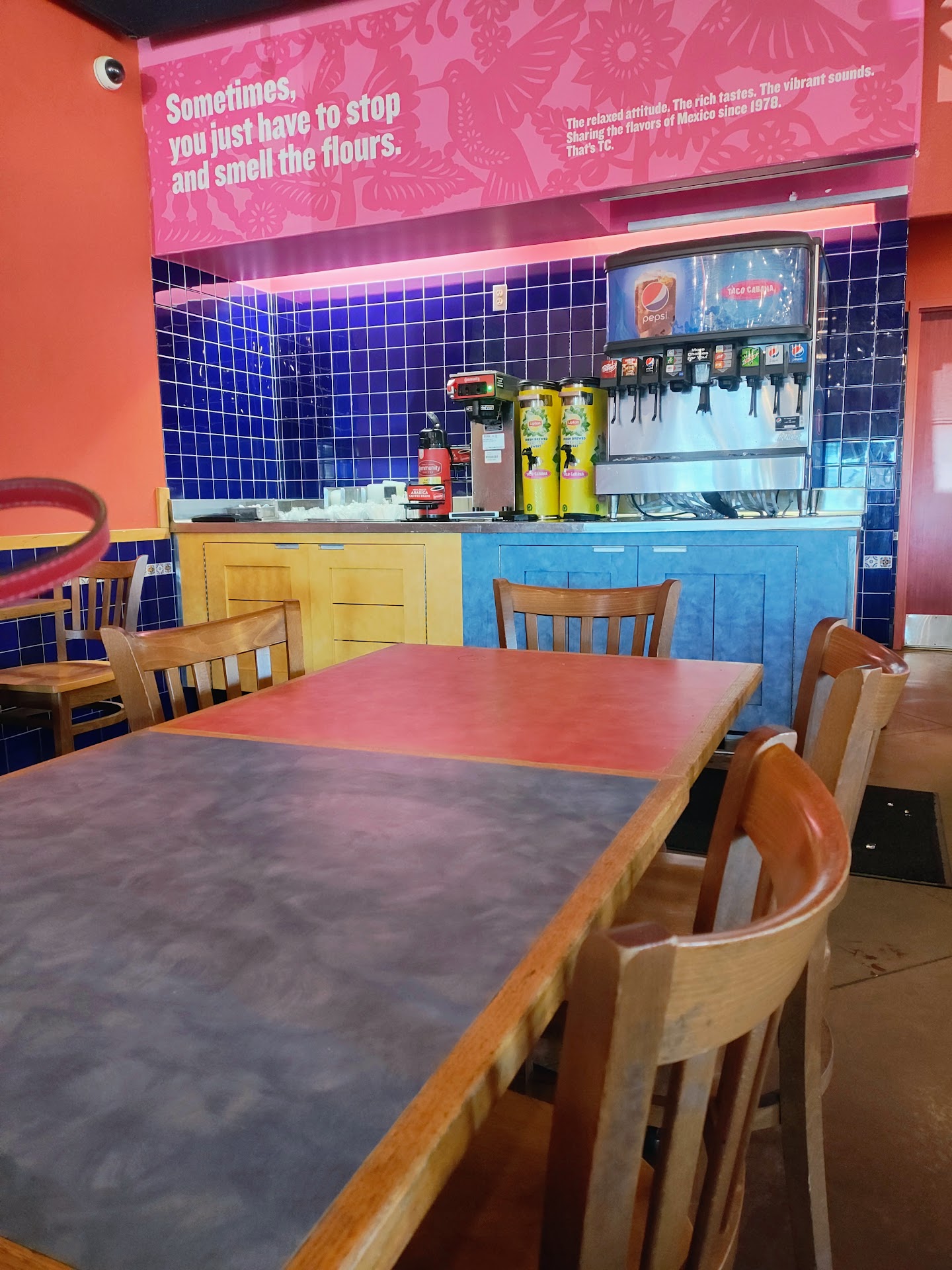 The exterior stands out and the salsa bar is inviting. But, you may notice it is pretty empty in the background. We walked in and ordered as the only customer left. You would normally think this would mean quick service and personal attention.