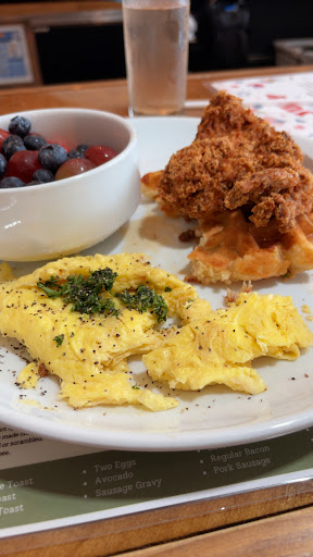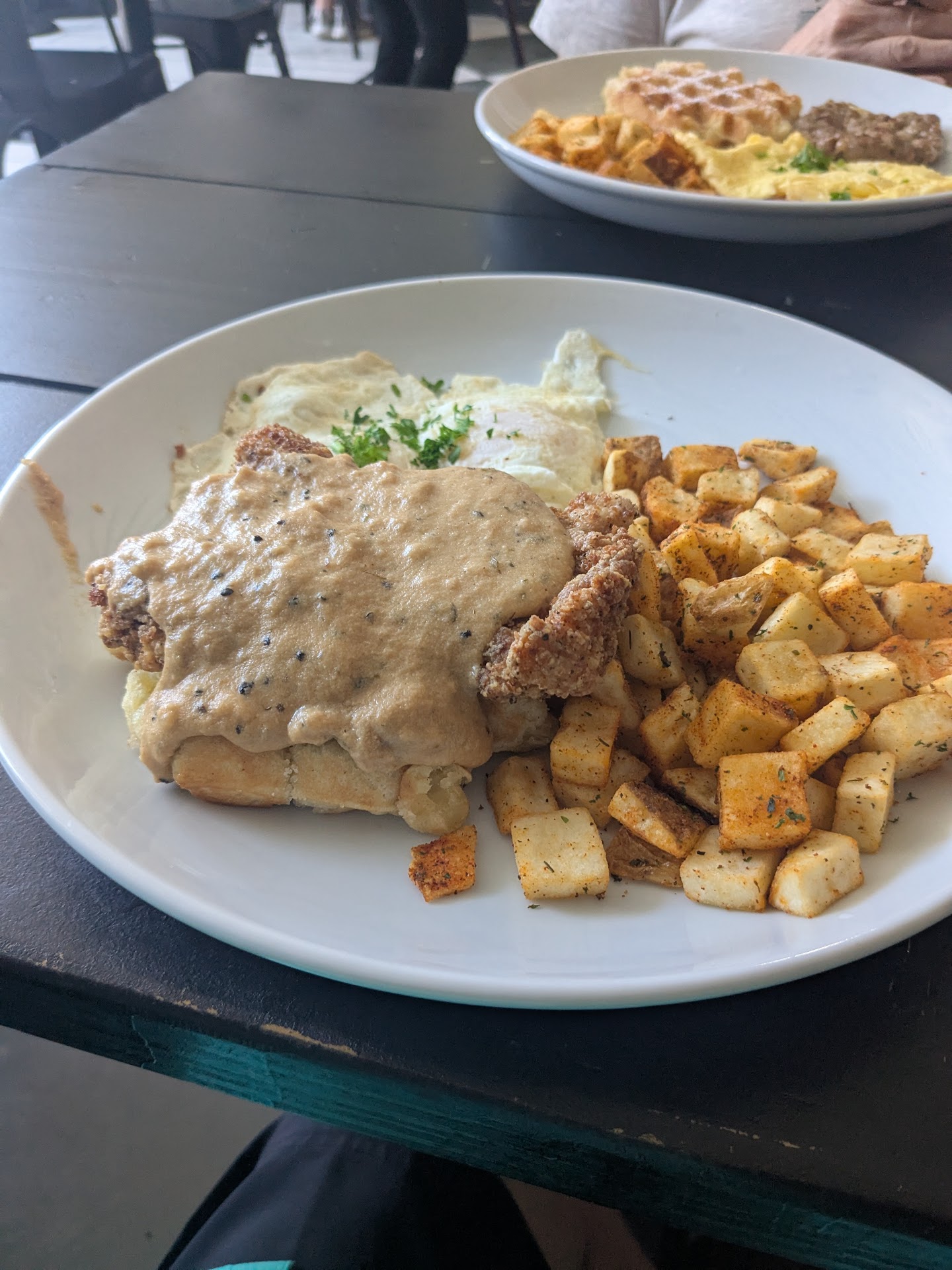 This was the absolute worst brunch experience in my life. It took 10 min to even be acknowledged and seated (servers looked at us but didn't bother to seat us and we stood next to the sign saying to wait to be seated). Honestly, the entire time we were there we got this really terrible service like we were annoying them just by being there. After we were seated and ordered it took another 45 minutes to get the food. We were excited and understand they are busy on weekend brunch so didn't mind waiting in anticipation. However, after waiting for forever, the food came out COLD. Potatoes were tasting old and stale, waffles tasted like they were reheated from the freezer being super cold, hard on the outside, and clay like inside. We informed our server who was grumpy the entire time and ignored us and acted like she hated her job and hates us as well. When we told her, she said that's just how the waffles are, they are dense, but they could make it again. After waiting so long, we didn't wanna wait again so we said to just get the check. Another guy then came and asked what was wrong with the waffle. Wr told him and he just took it in his hand (not with the plate, just the waffle), inspected it, and took it back to the kitchen. The lady server then came and said that they took it back to the kitchen to show the chef cuz he keeps messing up orders/cooking and they have been getting a lot of complaints. This was after she first said there is no prob with it, that's just how they are, she now agreed that they were not cooked well but didn't care. She gave us the bill and we left hungry, irritated, and like we wasted a good chunk of our Sunday and a good amount of money for food we couldn't eat and service that was extremely slow, uninviting, and made us feel like we were bothering them with our presence. They didn't even offer to take it off the bill (usually if you are ready to remake the dish and we say it's okay, it's standard to remove it or at least offer to), didn't show any concern with our dissatisfaction, and straight our didn't care about us. They don't know how to treat customers and also don't know how to cook (which they openly admitted). Don't waste your time or money. We will never make the mistake of coming back. We usually give second chances if we aren't too satisfied with a place, but here, never again. If y'all don't care about us, we don't care about your business. I hope you take this feedback constructively and do better for your other customers because nobody should have to go...