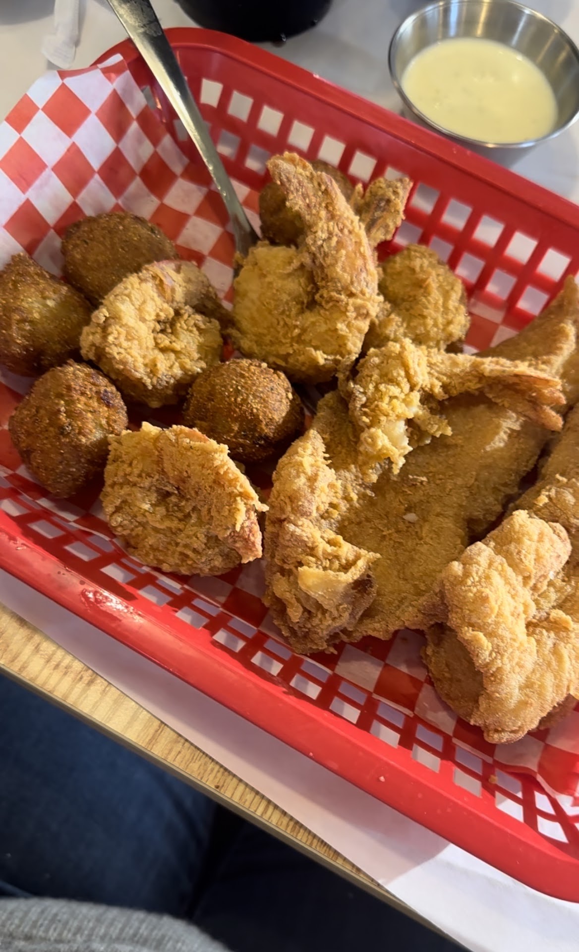 the fried rice is good it has light flavor but it was good. We had a number of items from the menu. 2 Seafood Boil bags (VERY BLAND IN FLAVOR, they just steam the food then put it in the bag with sauce). Fried fish (undercooked.and shrimp basket NO flavor just batter. Chicken wings were better but the lemon pepper wings were very sour (not the normal lemon pepper kinda sour). I gave this place 1 star because the waitress was HORRIBLE and the food was not good enough to be priced as high as it is. I waited 20 minutes before she came to the table to take my drink order (gave her my food order at the same time as my drink order) I waited 15 minutes for just my drink and still had to stop a separate waitress and she gave me my drink. The waitress did not come back to the table at this point for 30-40 minutes and when she did she came with food for only 2 people. It took a FULL hour and 45 minutes for almost everyone to get their plate. (It was NOT packed) (10 of us total including the 3 kids meals) 2 kids sat for an additional 20 min after 4 adults got their meals. And she gave 1 kid the wrong meal waited 30 minutes to come back and say it was the wrong order it belonged to another table!! Then proceeded to take her food from her as she was eating it….. I had to remind her that there was still orders missing and the rest of us were done eating before the other 3 got their food. Fast forward to the check that we had to ask another waiter to give us along with refills because our waitress was always nowhere to be found. She had up charged and added charges to some of our tickets (had to ask another waitress to fix). We’ll try this place as a family 1 more time in hopes of a better experience but this one was a horrible experience. The the receipt attached belongs to just three meals 2 being kids meals. the kids meals do NOT come with drinks and they will charge you extra to substitute fries for...