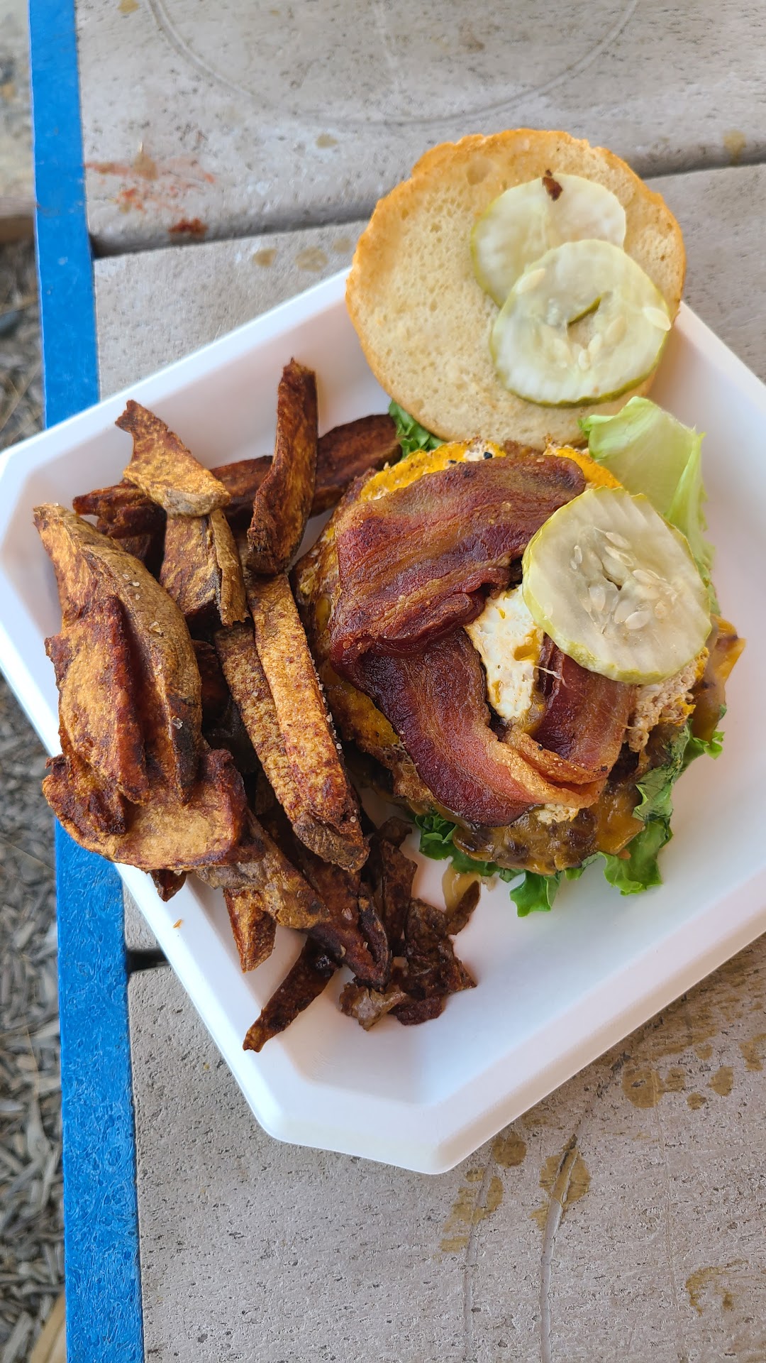 The burger? A glorious, juicy slab of beefy perfection that made me question every life decision that led me to go this long without it. The fries? Deep-fried in beef tallow like they were personally blessed by the spirit of a cowboy chef from the 1800s.