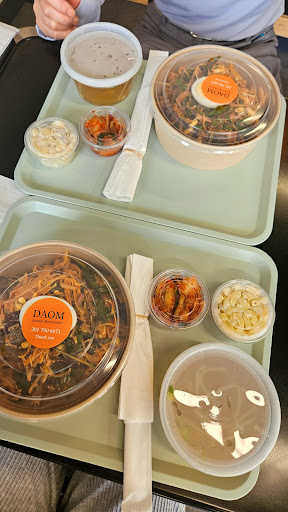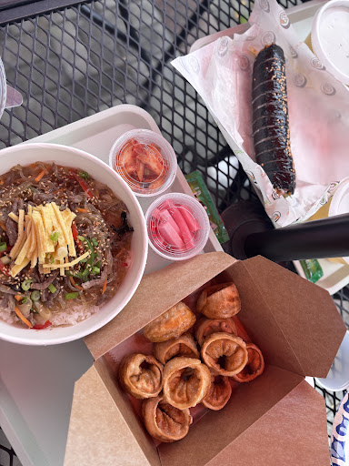 My husband and I ordered japchaebap, kimbap, and kimchi dumplings. The food was neat, fresh, and delicious👍👍 (I don’t understand why some Korean restaurants serve japchae cold. My husband and I both prefer it warm as it should be.) By the way, I loved the soybean sprout soup that was served as a side dish❤️