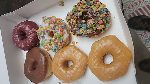 I ended up getting a apple fritter. It was really delicious!!! The inside of the shop was really cute and quaint. Thereâs also seating inside and the safe is so kind and caring.