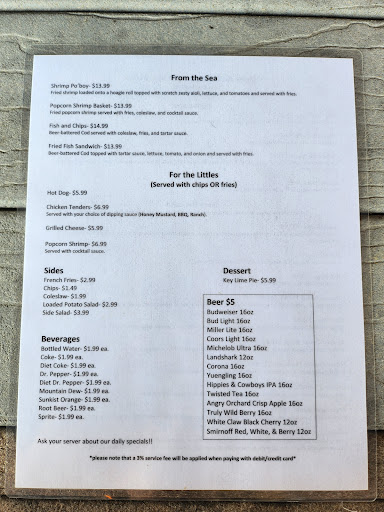 Read moreBeautiful place to sit and enjoy the water. There was an old little dog that peed where people eat, so that's interesting. They have no ice for any drinks, everything is bottled or in a can. We ordered the loaded fries, cheeseburger, spinach wrap, chicken tenders and the fish and chips. Burger and all the fries were way over salted 🤢 Think McDonald's but worse. All of the other food was decent. Price was high for lunch especially with their 3% increase on debit card transactions and that happens after you get your check and total.. they add the extra percent after. No worry it totally says it on the menu 🤭 We are local and will not be providing this establishment with any more...