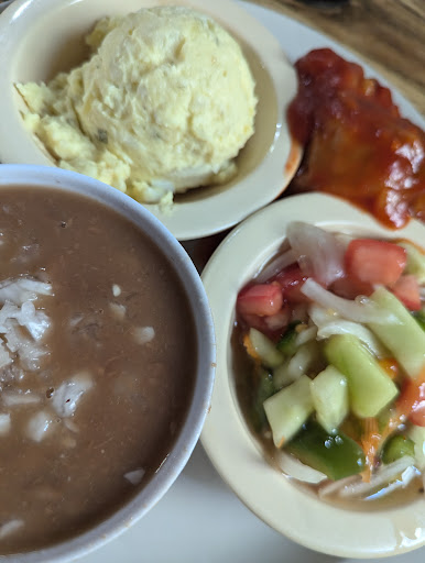 Updating original review now that I've eaten here several times It's seat yourself unless there's a long line & the waiting area is crowded. There's a room to the left of the buffet/salad bar with more seating & for a larger party. The staff all work together to keep you covered, we had 3 ladies take care of us this current visit. Lunch & dinner options are good but breakfast is my favorite! The sausage is individually patted & not machine processed. You can do a 1/2 & 1/2 order with 1 sausage & 3 bacon. You can substitute grits for hashbrowns/breakfast potatoes, all of which are great. The pancakes are sweet so if you like that sugary morning fix this is a great option, bonus the syrup is delivered hot & the butter is spreadable! The all you can eat breakfast buffet is a bargain if you can eat more than my pictured food which ran about $10 - $12. We tried it one Saturday & I left WAY too full. The salad bar looks good although I've never tried it. I like the abundance of sides on the lunch/dinner menu. I don't think there's a vegetable plate option for X number of sides but they're reasonably priced a la carte to make your own. The sides portions aren't obscene so cost & waste remain low. It is very typical of a southern cooking diner. If linens, lobster, & filets are what you're looking for then you won't enjoy this great Mom & Pop. Ooo & they do burn logs in the fireplace when it's cold! Fast & friendly service. Good breakfast & delicious pancakes. Will go back on a Saturday to try the buffet. Very...