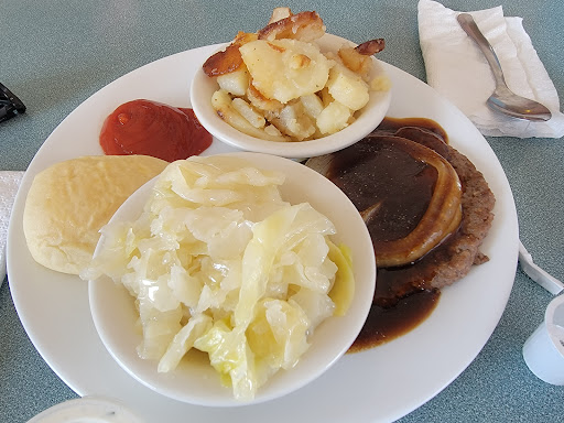 1 star. To start, the outside was VERY off putting. I walked inside to be ignored and stared at the the other customers, I felt judged by the man at the counter. The girl waitress kept messing up and trying to flirt/hit on me. I order a kids meal because they don’t serve breakfast at 11am and the other food was NOT appetizing. It took about 40 minutes to get one chicken tender that they obviously had bought from a store and threw in an oven, it wasnt real chicken, and about 15 fat fries. I only ate the fries that I had to season with salt myself. Very dirty floors, windows, and table had hair all over it. Not to mention the bathroom was locked the entire time. Conclusion, Absolutely filthy and terrible.. Not to mention the couple beside me was very obviously doing PDA and looked like they were about to make a baby where I was eating. If I could give this ZERO stars I...