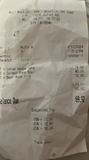 With as much to choose from, as a new patron, I do not recommend Mori Mori in the slightest & now I will tell everyone I know how me & my family were treated here. Clearly there donât appreciate loyal business or basic restaurant hospitality.