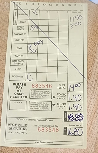 Other than that, Waffle House in general will still continue to get my business. They'd just get more on Lovell if they'd fix a couple of...