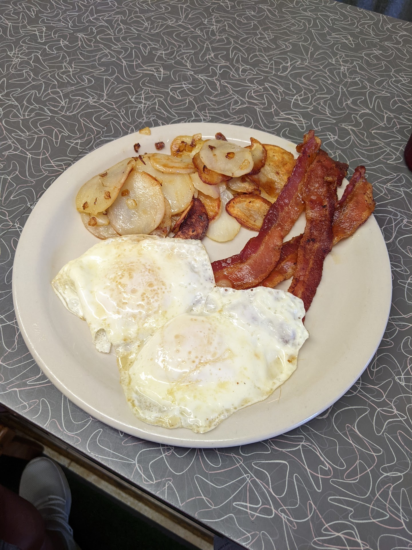 Read moreI had been here before and remembered it to be mediocre but it's right down the street from me and wanted to find a locally owned place that I could visit often so I thought I'd try it again. My first cup of coffee was Luke warm. I ordered the Big breakfast with eggs over medium, fried potatoes with sausage gravy, sausage patties, and rye toast. I also asked for hot sauce when I ordered. The eggs were cooked perfectly, the potatoes and gravy were very good, the sausage was undercooked for me (I think they are pre-cooked and come frozen) and the rye toast was not toasted enough for me. The staff was very nice but overworked so service wasn't the best. I like hot sauce on my eggs and I don't like cold eggs so by the time I got the hot sauce I had already eaten them. My 2nd cup of coffee was much better. I love the look and feel of the restaurant and I really like the staff but I don't think I'll be going back anytime soon. The food was ok but they need more staffing. (The waitresses were working very hard, they just...