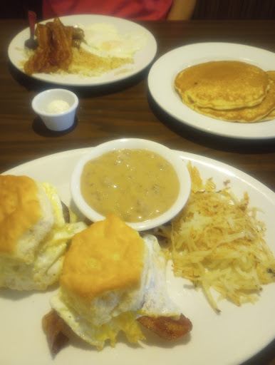 Will not go back to this place for any reason. We ordered a Homesteaders breakfast, a kids pancakes with a sausage link and an orange juice, and an order of just biscuits and gravy, ordered carry out. Went to pick it up, the time for pickup was supposed to be 10:21, got there at 10:28 and the lady at the register had no idea i had even placed a carryout order so i showed her my reciept and her response was simply well it is not ready, it will be a little bit. She finally got my order ready and threw the bag on the counter and walked away, not a thank you have a nice day or anything. I took my order and when i got out to the car i checked it, i was missing an order of biscuits and gravy so i went back in, i explained to the lady what i was missing and she proceeded to tell me that i was wrong and that it was in the bag, so i showed her that the homesteader came with an order of biscuuts and gravy and that we had ordered another seperate order, to which she threw her hands up and said sure fine whatever. She again tossed the container on the counter and walked away without a word. Upon getting home and checking i found that the OJ was nowhere to be found, we had no sausage in the pancake order, so we basically just got an order of pancakes, also the homesteader had the eggs and was supposed to have hash browns, but had home fries also i ordered sausage patties with it and instead got 3 pieces of bacon that was still almost raw and that was it no sausage at all. This place is ridiculous and needs to be shut down if this is how they treat customers. Will not be back. At one point i had asked to talk to the manager and 3 other people were standing there also waiting on the manager and we were told the manager was not in the store for whatever reason. This place...