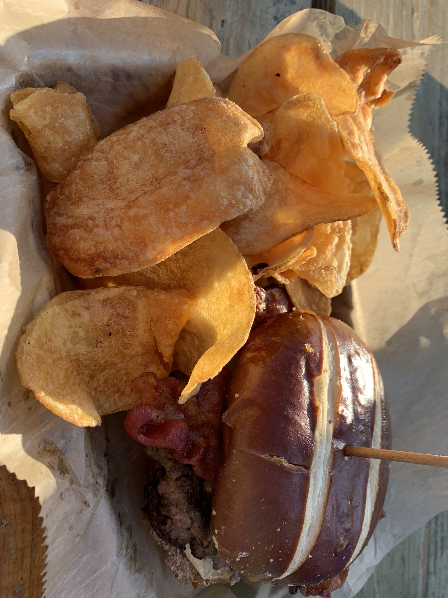 Charlie’s Pub and Grub has a lot going for it but unfortunately had a few crucial aspects that just weren’t up to par. They have a great backyard space with space for a live band and I can see how this would be great for an evening with a big group of friends. However, I just can’t shake how weirdly they do service. It’s a bit of a free for all and you constantly have someone asking if you’ve been served or not. I’m just trying to talk and I can’t do that if I’m interrupted every 30 seconds. Food-wise, I was extremely disappointed with my burger. It came out with effectively all the flavor cooked out. Paired with some flavorless chips (they must’ve just dunked the potato slices in some oil and threw them on the plate), the only redeeming flavor was the pretzel breadsticks we had ordered. My girlfriend’s veggie burger came out burnt as well, so I guess they just forgot to watch the grill.