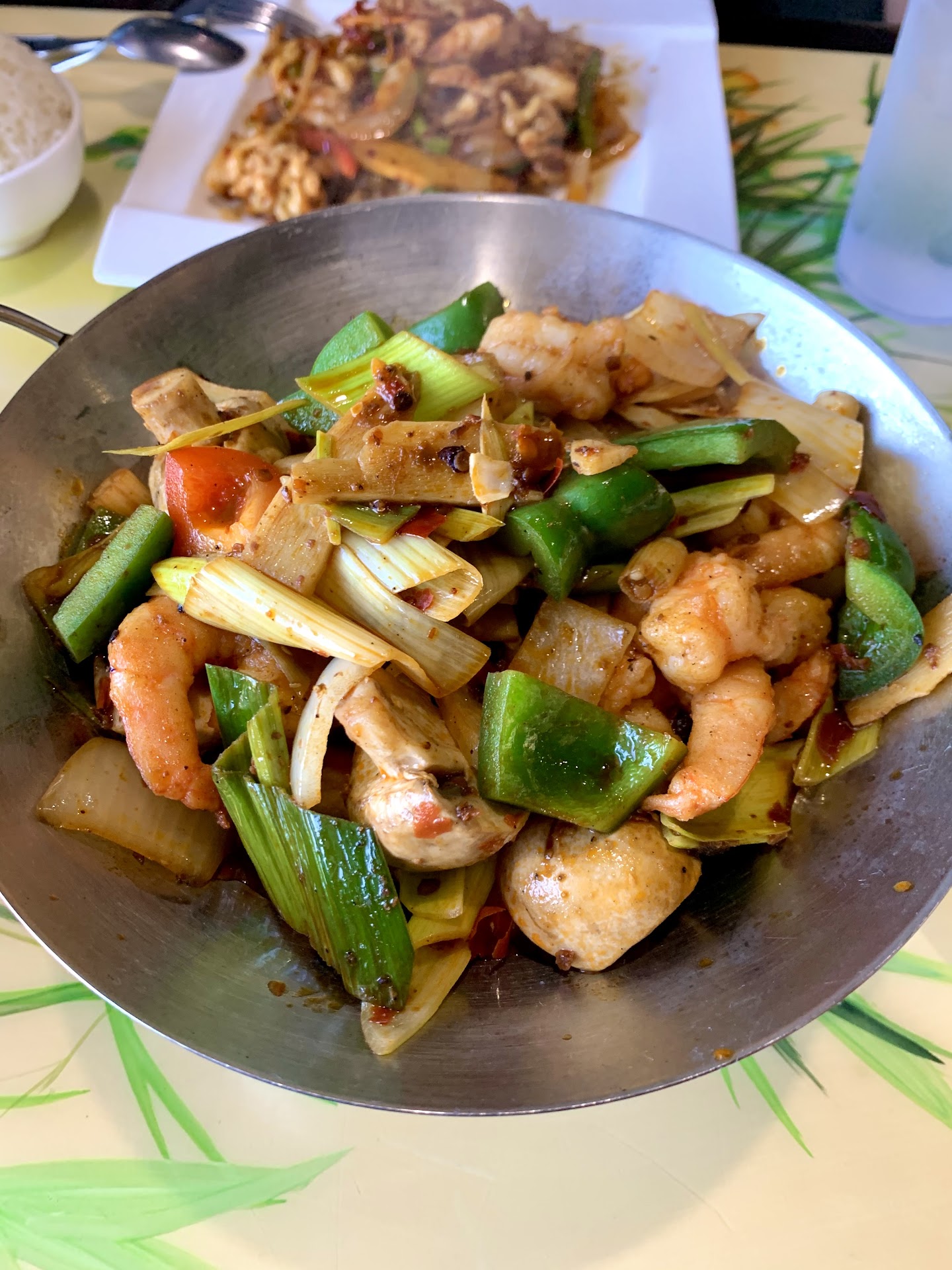 I ordered a Shrimp Dry Pot and Mango Chicken (and made it spicy 🌶). To begin, they brought me a mini wonton soup, which was very tasty. It was so good, I had seconds. The meat had the perfect amount of spices and all the flavors literally melted in your mouth. The pot in which my dry pot came in was the cutest and coolest thing I’ve eaten from. It was still on and boiling a little when it came to the table and eventually turned off. The shrimp dry pot was very flavorful and tasty. The shrimp were cooked perfectly, and the vegetables still held their natural crunch and flavors. The mango chicken was also delicious. It was sweet and salty with a spicy kick. The chicken still held its moisture and absorbed the flavors from the mango and spices. The vegetables were also crunchy and delicious like on the other dish.