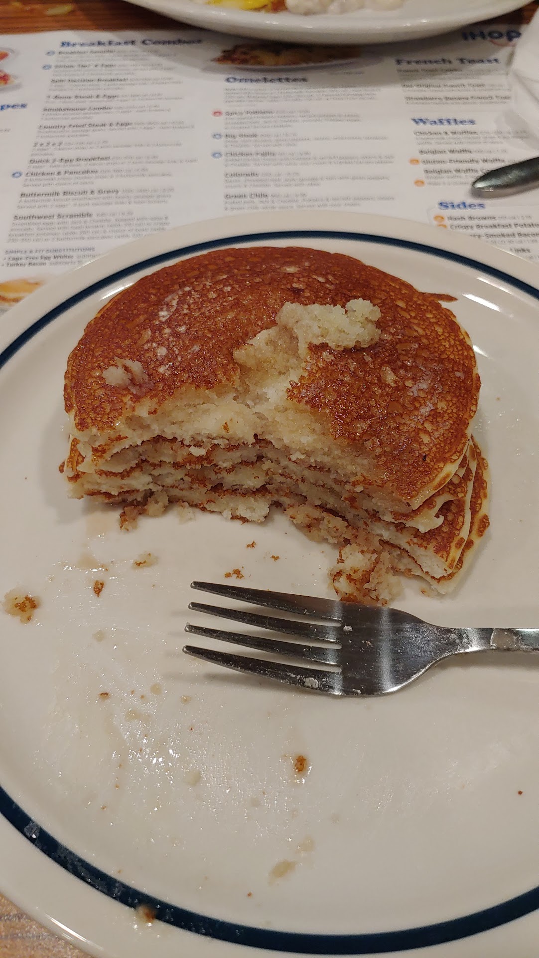 Read moreI stopped by the restaurant and placed a carry out order 2 days ago and it was the worst meal I had at any IHOP I've visited. I've been to IHOP more times than I can count in other cities. I stopped bybthe restaurant late at night and placed a $23 order for a chicken fajita omelette and french toast. I tipped the person who took my order before I received even though I was waiting there and taking it to go. I hadn't eaten all day after a long day of work. I live on the other side of town so I just wanted to get back and enjoy my food. When I got home and started eating my food I couldn't even get through the first bite without spitting it out. The chicken was so dry and hard I thought they had given me the wrong order for a second. I tried to keep eating thinking it was one bad piece. I couldn't have been more wrong. Each bite I took was met with harder and dryer pieces of chicken. It was the worst chicken and omelette I've ever had. The french toast I had was black and brown. I didn't feel like driving back across town that late at night and they don't answer the phone after a certain time. I went back today when I was able to speak to a manager about what happened. The Manager came out and after I explained the issue, showed the payment made, and brought back the uneatable food, did not offer an immediate apologize. It felt Iike I was inconveniencing them for what they did wrong. I had to wait until I was grabbing my food and leaving before I received anfy orm of an apology. They still didn't except responsibility for cooking it wrong. They just basically said that's how the chicken comes, pre-cooked so they just heat it up. With that in mind, I won't be back at this location. I could do that at home and have it...