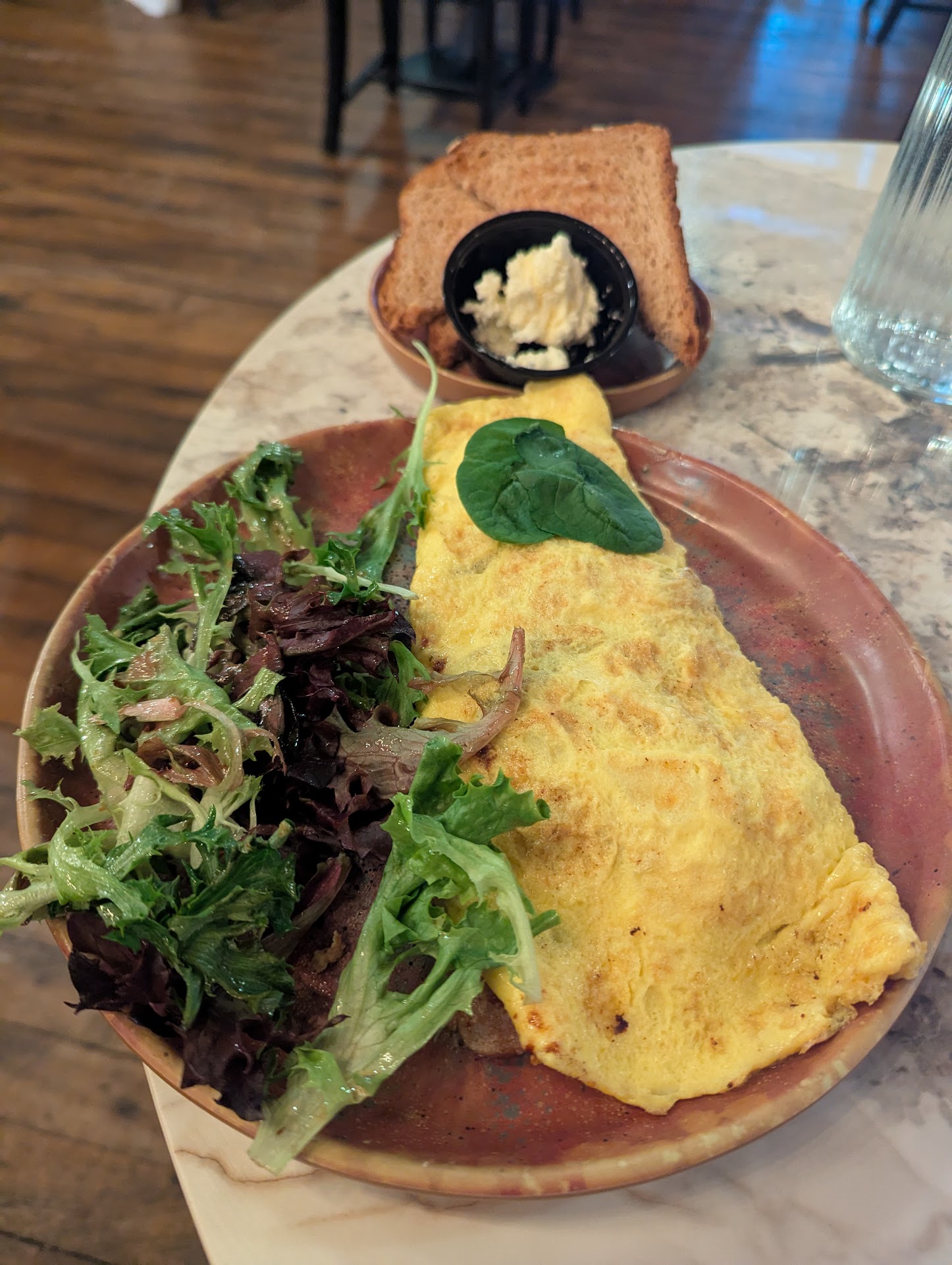 The cinnamon roll was a standout—a generous portion with that soft, gooey center that cinnamon roll dreams are made of. The berry yogurt and granola bowl offered a refreshing contrast: silky, whipped yogurt with a subtle vanilla note, topped with a vibrant mix of fresh berries and crunchy granola.