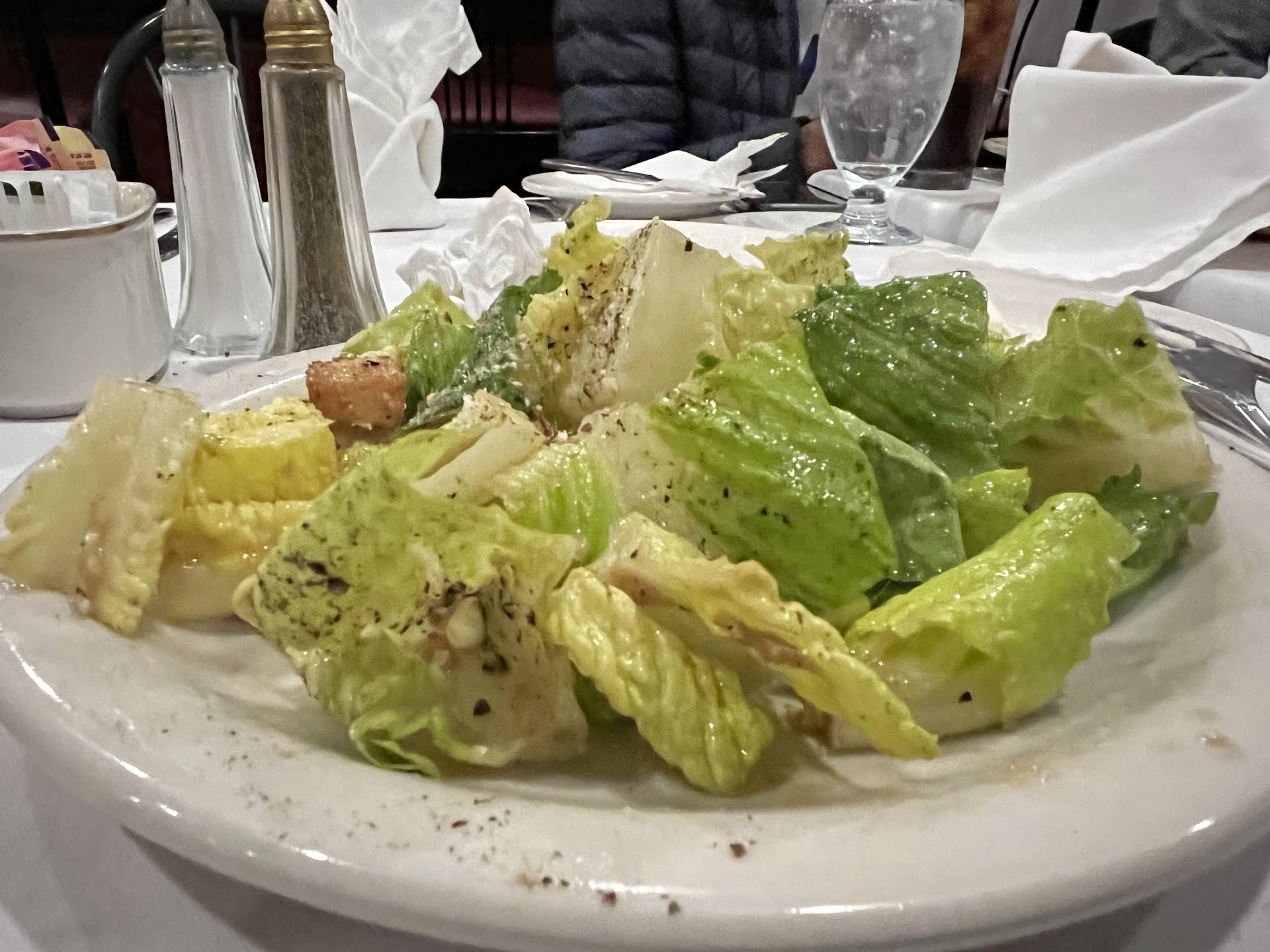 Read moreLet’s begin with the nice linen napkins folded so sweetly on a stained table cloth. Lovely if somewhat boring music playing, in competition with the TV mounted high on the wall tuned to news which is so relaxing. The waiter with his phone ringing as he’s asking what I’d like to drink. And of course pulling it out of his trousers to check it while he’s talking. He doesn’t make eye contact while describing the specials, stares across the room. The bread is served eventually with rock hard- but real! butter and warm, chewy bread that has oddly been grilled so that it’s ridiculously and unnecessarily messy when eaten. The pricey (which is fine if it’s edible) veal piccata was nice and thin but a surprising mixture of greasy and sour which was unpleasant. The small potatoes were bland but edible and the vegetable mixture just one second from dead. Everything on the plate looked as if it had been made hours ago and reheated. When I was asked how I liked my dinner I relayed my concerns and the chef came out to graciously offer a replacement meal. Scallops that when deposited at my table reminded me of, and I’m sorry here but, mucous. Salty, squishy on the inside and dry on the outside. Again not edible. Absolutely would never...