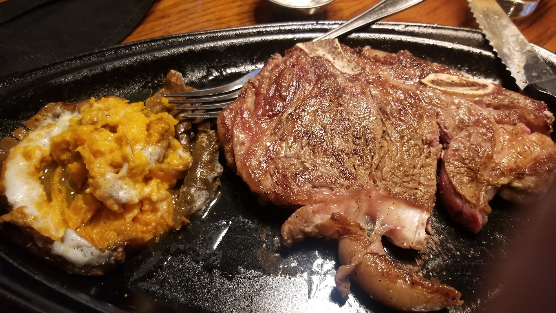 Read moreService: My wife and I came on a Sunday afternoon with a reservation. After being seated, it was a little long before ours server came, but also a little busy so we gave the benefit of the doubt. Things went downhill from there. We both ordered waters and told the server we needed just a minute. Someone brought out our waters, which we had to send back because our glasses were dirty. Then, the bartender (I assume) brought our new waters. Once the server finally came back to the table roughly 15 minutes after the first visit, she asked if we were doing ok. We told her we still needed to order and she then realized she couldn't take our order because she didn't have her tablet. She went to get it, but rather than come straight back to take our order, proceeded to help other patrons who had already ordered and returned several minutes later, once again with no tablet. She did this time go straight to get it and came back. We placed our orders, each of us getting a steak, potatoes and chili. She repeated the orders back to us to confirm they were correct, which they were, and informed us the chili would arrive early as an appetizer. 5-10 minutes later, a food runner brought out 2 bowls of potatoe soup. We explained to her we didn't order that and she was confused. She brought back our chili a few minutes later. Our server came back after the chili the arrived and apologized that she accidentally put the order in incorrectly. (How?!? If you read it back to us) Finally our food arrived. And the rest of the meal went without anything noteworthy. Food: The chili was actually quite good. The steaks were tender enough but the seasoning was not to our liking. The potatoes were decent too. The water had dirt the first go around which is worth mentioning twice. Atmosphere: The restaurant isn't anything to write home about but did seem clean. However, the lighting (not something I normally would call out) was terrible. I was wearing a hat, and the way the lights are situated in the ceiling, cast a shadow so dark I couldn't see the menu with the hat on. Just felt weird and off putting. That being the least of several negatives during our experience, we have no...