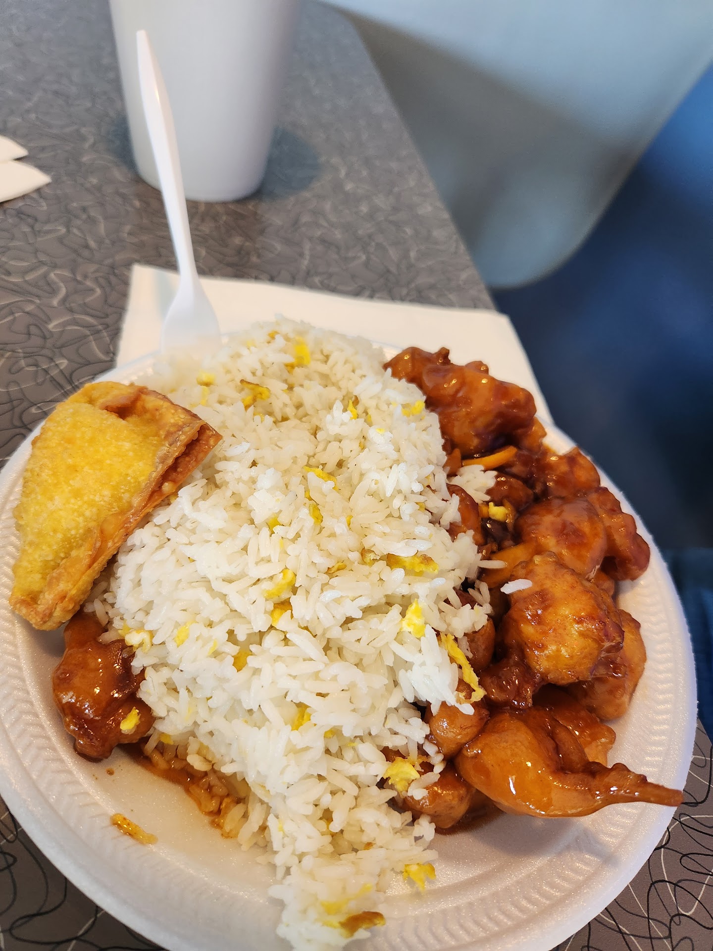 We ate in the restaurant at an off time of the day, 3:00ish. The portion sizes were very generous, the food was freshly made, the cashier was friendly. The Crab Rangoon are very large and fantastic! I ordered chicken and pea pods my spouse ordered orange sesame chicken. My pea pods were scrumptious but the chicken was the same deep fried chicken as in my husband's orange chicken; tough, dry and over cooked. I would recommend asking detailed questions about the preparation and contents of the dish you order. If in doubt, stick to the appetizers instead of the main dish.