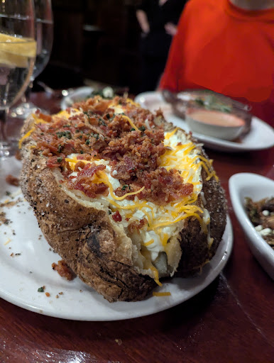 Read moreAtmosphere: The dining hall is too dark, yet the table my dining partner and I were seated at had a harsh glare from a wall sconce bulb that annoyed us worse than the blaring train horns from several passing locomotives during our stay. Speaking of loud, I found the music volume a bit much. The area around our table was dirty and dusty. Service: The hostess was pleasant. Our server was nice, but seemed inexperienced, yet competent enough. One runner was fine, while the other appeared angry and was off putting. We waited too long for a couple of food items, acknowledged by the staff in the form of receiving an unsolicited dessert. Drinks: The water was adequate. The Old Fashions were affordable (if rang up properly at $8.25/ea) and ok tasting, but a bit skimpy in size. Food: The menus are not descriptive enough. The lobster bites were cooked and presented ideally, but lacked flavor. The star of the night was the spinach salad, although I wish it didn't have bacon on it (again, they need better menus). My partner and I agree that the prime rib and strip were the worst steaks we've ever had; worse than Dennys and the local breakfast diner's $11 steak and eggs. The baked potatoes were fair, but bordering subpar, with the asparagus firmly below average. Despite the disappointing experience thus far, we decided to attempt their much lauded bread pudding for dessert. It was fine for the first two bites, but found it not agreeing with my stomach after the third. My partner didn't heed my suspicions and ate more, regretting it by the time we were walking to our vehicle.