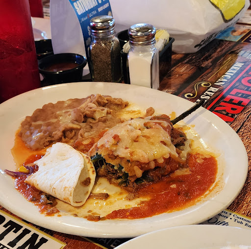Read more11 of us arrived at 2 pm, and the restaurant was mostly empty midday. My husband ordered a taco salad which arrived as lettuce, squash, guacamole, sour cream and chili with a small of meat cooked in, no cheese, no taco meat, no refried beans, etc and a shell that was quite stale. I ordered Chilis Rellano (one of my favorites from most places). Unfortunately, they are nothing like chili's I've had elsewhere. You receive one chile, no cheese stuffed or other meat option, just a touch of cheese melted on top, made with barely seasoned brisket and a watery tomato salsa, not a cooked sauce per se. I'm diabetic so I saved my carbs up for this treat specifically and was saddened. I requested a vegetable in place of beans and rice as a diabetic replacement, thats why my plate is more empty. The veggies arrived separate. Be prepared, it's extra to substitute. However, I will say the squash/mixed veggie medley was the best part of my meal. My dinner was left essentially uneaten and picked up without even a question from staff. We were all shocked to find a 20% gratuity added to our bill. We all tip well over this amount. Having a tip deducted without mention was offensive to most of us prepared to leave more, so most did not at this point. The service was...