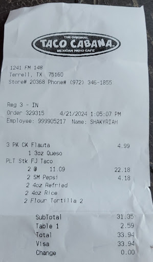 Ā Ā Ā Read moreHow does a place like this stay in business? every time we go there's a problem.. it takes forever to get your food and you can't get ahold of anybody inside they're o In the back hiding and playing on their phones doing nothing and the inside of the restaurant is trashed and they're out of stuff we tried to use the doordash app but you are not able to customize the fajita tacos specifically the chicken.. I only wanted cheese and onions and the only option I was given was to either remove peppers and onions or add peppers and onions you can't remove just the peppers and no option to add cheese so my wife said I'll just go up there and place an order and tell them at the window how you want it so she did and of course she gets up there it takes forever to get through the drive-thru and when she does she's told oh sorry we don't have any chicken fajita it's going to be 30 minutes to get it ready so we just gave up..The employees are rude there's no management representation the place is dirty and nasty and I'm sick and tired of having this particular Taco Cabana in my community.. Do us a favor and close this place down or sell it to somebody that can run it properly it's not fair that we had to have such a sub-standard Taco Cabana with the absolute worst service the worthless management team with employees with the worst attitudes who could care less and after reading all the reviews it looks to me like corporate could care less as well... I could spend my money anywhere and probably will from this point on we try it about every six months hoping it night have finally resolved some of the problems that plaque this place but its always the same thing it's...