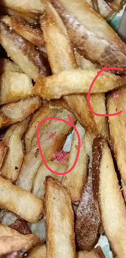 Read more🛑HEALTH VIOLATION🛑 Will never order from this location again would get zero Stars if I could I bit into one of my French fries and almost broke a tooth on some bright pink Sandy substance I took a piece off to try it curious as I order every other week and have never noticed this on my French fries before it tastes like straight sand feels like sand they tried to tell me that it was a new garlic seasoning that they have when in fact it was not after having a conversation with the manager after asking him if I could bring it up there to show him what was wrong with it he had no interest in me bringing it there so here I am making my report with pictures since he does not see the safety concern...