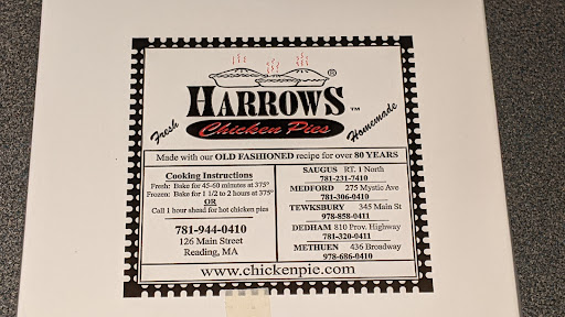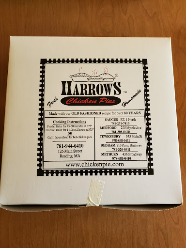 Read moreI'm only now getting around to finally trying Harrows chicken pie after hearing about them for years on a local foodie TV show. The chicken pies are great with a delicious perfect crust and big chunks of chicken. The sauce component was a nice balance of flavor not too salty. I really wanted to love the corn bread but I honestly didn't, it had a bitter flavor, maybe it doesn't contain sugar like some corn bread, but that is my only complaint. The service was pleasant. Just know that it's not a sit down and eat kind of place. Call one hour ahead to pick up hot food to take home or stop in and buy a frozen pie to bake yourself later. The "apartment" pie size is plenty...