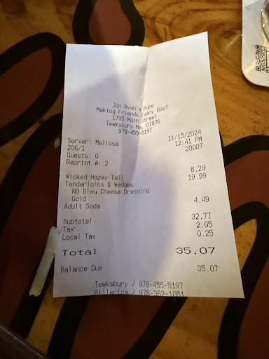 Read moreBit the bullet and decided to take my girlfriend to Jon Ryan's for drinks and honestly disappointed. When i viewed the menu that was brought up by the QR scanner on the table there was no Drinks Menu which when we asked the waitstaff we were told that it didnt exist and that we "needed to know what we liked to drink before coming in". Eventually we found out you had to separately google the drinks menu, when we got our drinks we were thoroughly disappointed in the taste the only think i could taste in this drink called Mermaid's Water the waitstaff recommended, was the pineapple. When we got our food I ordered a king size bourbon marinated steak tips which i will compliment were absolutely delicious, the potatoes and carrots i had for sides though not so much. Overall was not a fan of the attitude of the waitstaff as he also kept staring at my girlfriend when talking to us and was just...