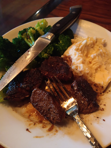 Follow-up: First time back after 3 years and it was not a good experience. The outback ribeye was burned on the outside, but nicely cooked in the middle. It was nicely explained to me that they cook over an open flame and that can happen. The manager apparently thinks I have never barbecued before. All I could picture was the person working the grill was a pyro. I write this after I made my way home and I can still taste that burned charcoal flavor! How does one get rid of it?! They offered to cook me another on the flat top and I agreed. In the meantime, I ate the sweetest sweet potato I have ever had even though I asked for no toppings. They likely cooked it so long it candied. The broccoli also seemed to have a half stick of butter on it. When the new steak came out, they included broccoli with it as well. The new broccoli also tasted like it had a half stick of butter on it. However, once I checked the steak that was quite rare, I realized it also had a stick of butter on it. Perhaps some of that is getting into the broccoli. Either way, if you are looking for a good steak, you are taking a gamble coming here. They clearly think butter makes the steak and do not know the difference between flame kissed and charcoal. The company I was with had a nicely cooked filet and her broccoli was not overly buttery, so it does seem its the luck of the draw. As you can imagine, she was done by the time my second steak came out, so she had to wait on me to eat it. I don't know about you, but that messes up the whole atmosphere in my opinion. And to top it all off, wouldn't you know I got charged full price. I guess charcoal is acceptable by...