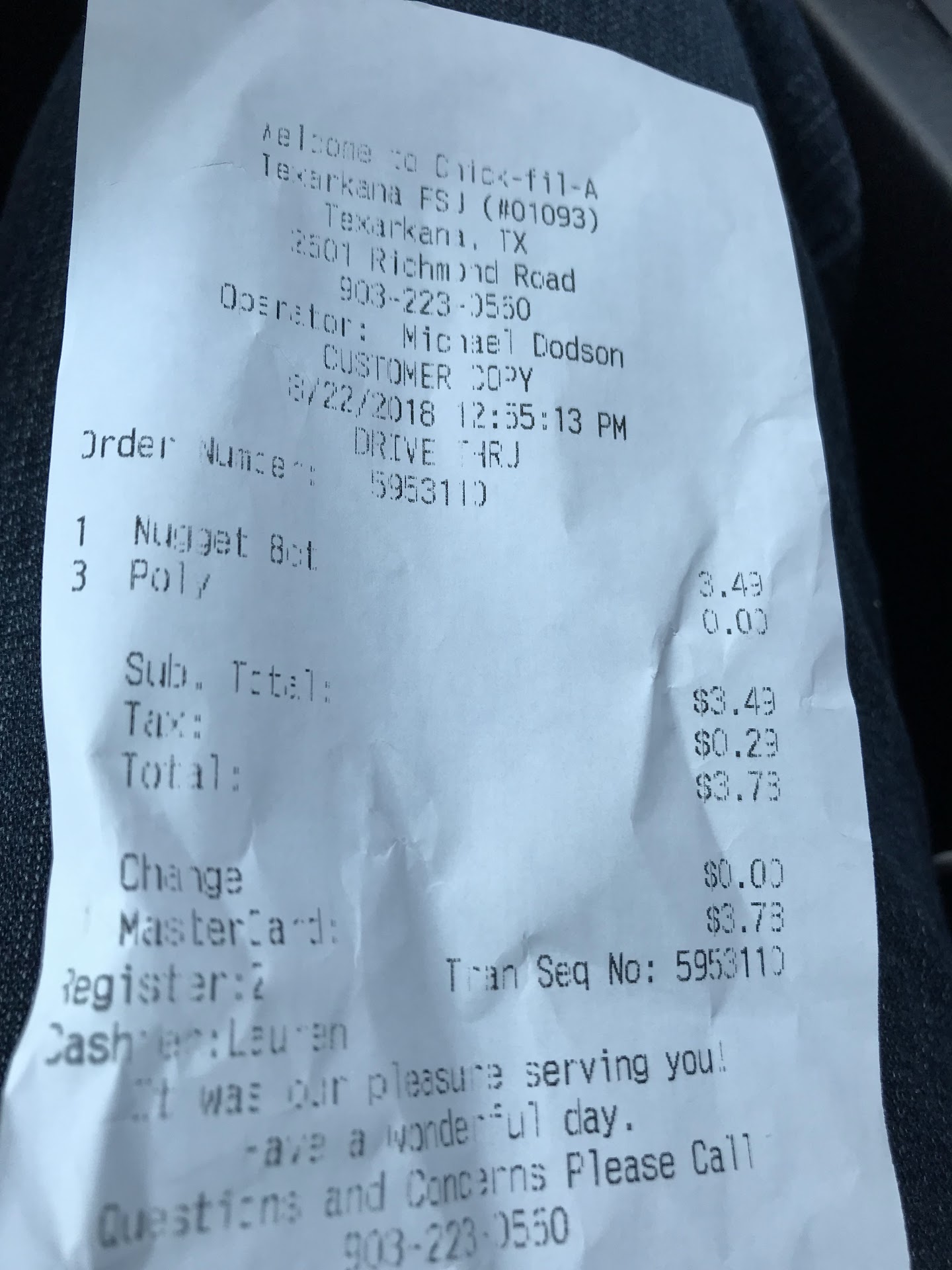 Read moreRude employees. Not a good example of what Chick-fil-A is supposed to represent on the customer service aspect. We were trying to read the menu when a female employee rudely gestured toward us and said "Cain't no customers be in here.." or something to that effect. Managers, please make the pick-up area look more presentable. It's completely rinky-dink looking now. If this is a permanent change to your format, then make it look more professional. The goofy little printed out signs are not properly positioned for customers to know where they are...