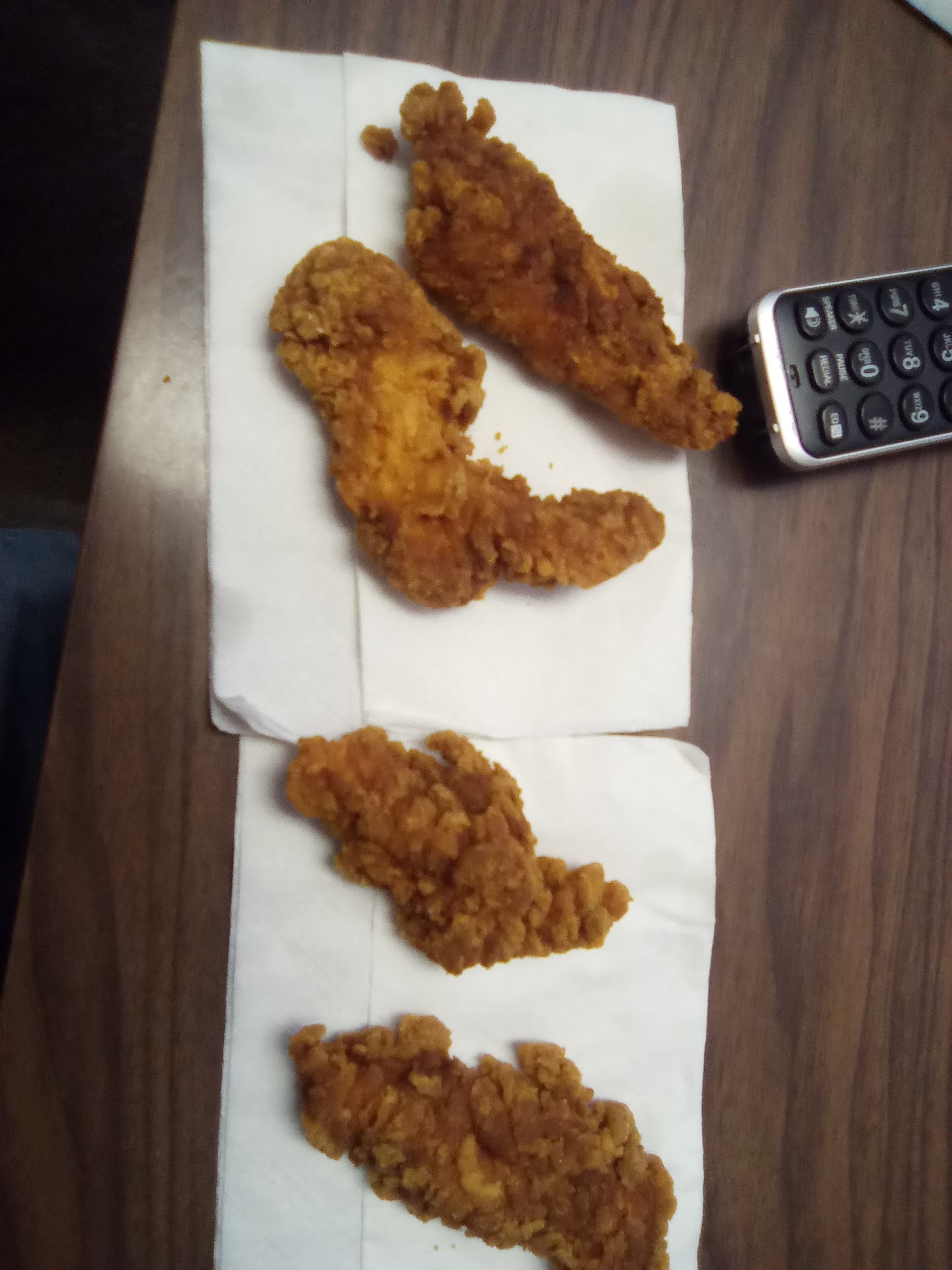Food is not good. Tired of old, dried out semi burnt chicken (that's like eating a rock) and cold fries. I usually get the 4 piece chicken strip basket. The steak fingers usually have pieces of gristle in it that is like eating rubber so quit getting that one and started trying chicken. The gravy container is usually cracked and leaks out and makes everything soggy and gross. Out of the last 5 visits at least twice the chicken was dried out and old looking or burnt. Starting to get old giving extra chances. They are nice but that isn't a good reason to keep going back. Especially not for almost...