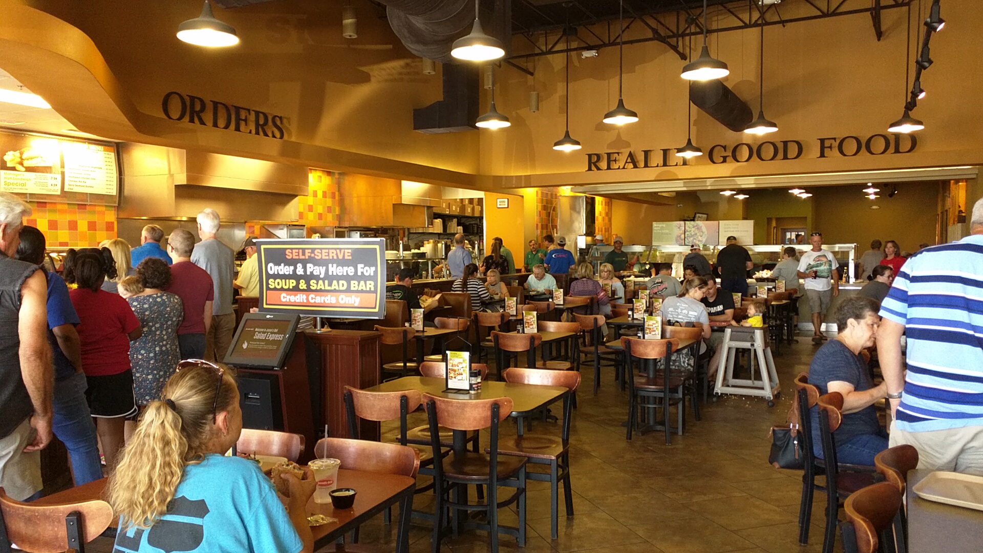 Read more5-18-23 Dine in, my elderly mother and I. Our order taker was absolutely wonderful! After that everything went down hill. Our order was #61. We waited and waited. We saw other tables with numbers in the 70s being served. I went up to the end of the serving line and asked if they forgot about us. They said they didn't go by numbers. Eventually we got our food, but not all of it. We both had a half sandwich and side salad. We didn't get the side salad plates. I had to ask for them. We got our salads at the salad bar, and there was no ranch dressing. And I mean the entire pot had not been put into the salad bar. I asked the worker who I had seen at the salad bar several times if there was Ranch Dressing. He brought out the pot, without a dipper. I had no way to put the ranch dressing on my salad. Again I had to ask someone if there is a dipper! I also saw a worker walk around and ask each table if everything was ok and if they needed anything. Guess what? They never came to our table. My elderly mother and I probably won't be back anytime soon. It was also absolutely traumatic to get out of the parking lot. No green light...