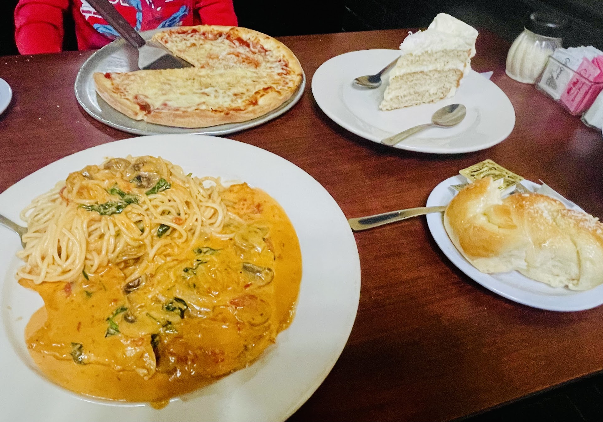 Read moreHonestly, I was disappointed. The bread looks great, but was cold. Then the kids menu is strange and for $6 you only get the entree. That's fine, but the entree choices are strange. I could look past that, until they brought out two dishes straight from the oven of baked manicotti and put them directly in front of my children ages 5 and TWO. Even the adults ended up accidentally burning themselves and the food was so hot we needed to get it out into another plate to cool down for two very hungry kids who didn't understand why they couldn't eat. The waitress had to come with pot holders to hold the dish while one of us scraped it out. After waiting over 10 mins for it to cool the kids did like their food, but it wasn't worth it. I got the fettuccine Alfredo and it wasn't bad, and our waitress was nice, but I'll never go back here. I...