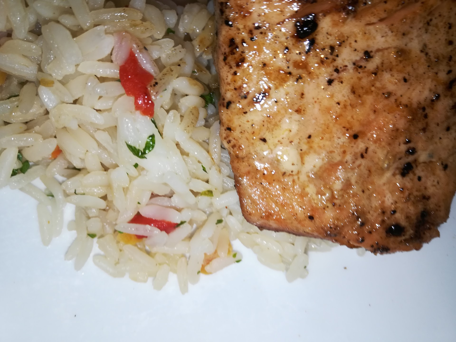 03-24-19. ** My wife's salad was a very slight green and mostly white, I should have snapped it to post, but I did my Salmon to no question. Not giving up, the Salmon was cooked through and the rice was a perfect dente just missed the splash.