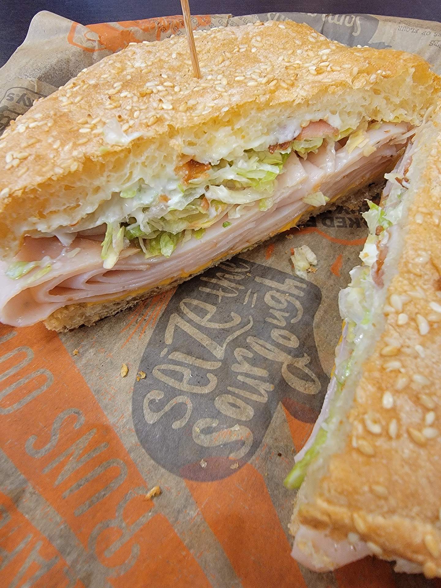 Read moreWe went for a quick bite after being on the road for 6 hours. Not being really hungry, we ordered a small turkey original and two waters...not bottled, but the little 10 or 12 ounce clear plastic cheap cups that we assumed would be free. The sandwich was $7.79+$.64 tax, but it rang up about $11.50. I asked the person taking our order to explain and he said he had to charge us for the water. Now I'm no math wiz but that would have made Schlotzsky's profit margin around 96% on the water alone, which of course I declined. A plastic cup that cost Schlotzsky's $.05 cents, if that, and literally a negligible cost to Schlotzsky's, in the hundredths of a penny of water. To top it off, the sandwich was deplorable. NEVER AGAIN...