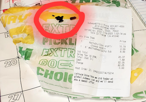 Read moreI ordered a wrap and a sandwich today, spent $22.05, no chips or drinks. Because of the new menu it took me a couple minutes to make my choice. The staff was impatient with me for not being able to decide. The lady got frustrated because I tried to use an online coupon and she told me they didn't except any coupons except from Subway itself. No one smiled. The peperjack cheese tasted and looked old. And there were these pieces of who knows what in my husband's sandwich, which are stretchy, perhaps plastic gloves, which I will post the picture. We lived too far away to take it back. I will not ever go back in that store. I loved the people who ran the store by Super Walmart but it is closed permanently. I have used the store down on Richmond and Moores Lane and I have been happy with it but it is farthest from me but I will make a point of driving there for better service and quality of food. I also called the store and all the girl could say was that she would tell...
