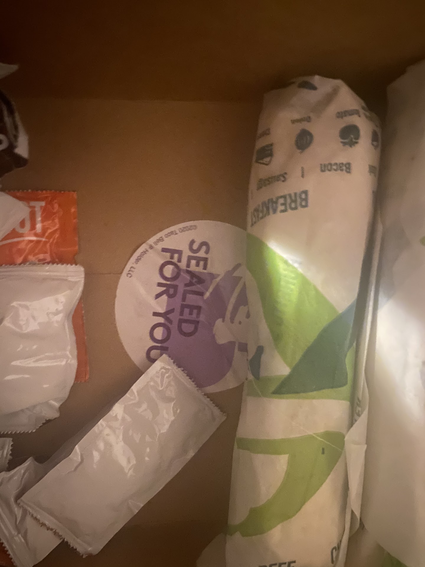 When they gave me my order, they didn't even bother throwing the other one away. So I did it for them. So when you go there, guarantee everyone there will say they're a manager. And the next time they drop food, it could be...