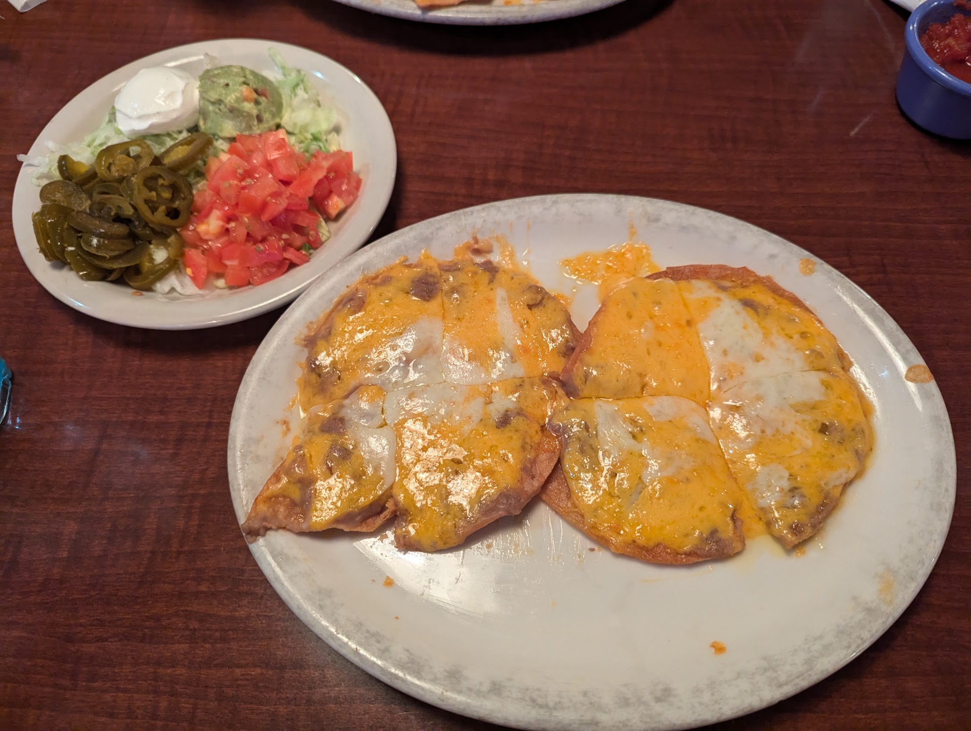 Read moreI'm sorry . I really debated on not doing a review because I know it's hard to run a restaurant but this was bad. First they switched waiters on us after ours seemed to have forgotten about us. But that wasn't really a concern because we weren't in a hurry. It was also quite and ordeal to get the bill straightened out when they overcharged us. But neither of those reasons are the big reason for the 1-star. The problem was the food. We ordered nachos as a safe bet.... and what we got was the attached photo. I don't know what it was but it's not fooling me. The "nachos" were merely a fried tortilla that was so greasy it could have been categorized as hazardous material...with a smidge of refried beans and the most orange cheddar cheese I've ever seen. I know that's a TexMex atrocity so not points deducted for the cheese but I'm still dumbfounded about the nacho situation. $10+ for this concoction?! To their credit they did refund the couple dollars they overcharged because I did not order or want the guac or sour cream. But the real kicker was that the waitress confirmed that tamales are the only thing they don't make but rather they purchase. Wild. Because the restaurant is (kinda) named after the dish. I feel bad but I just cannot recommend and I would absolutely...
