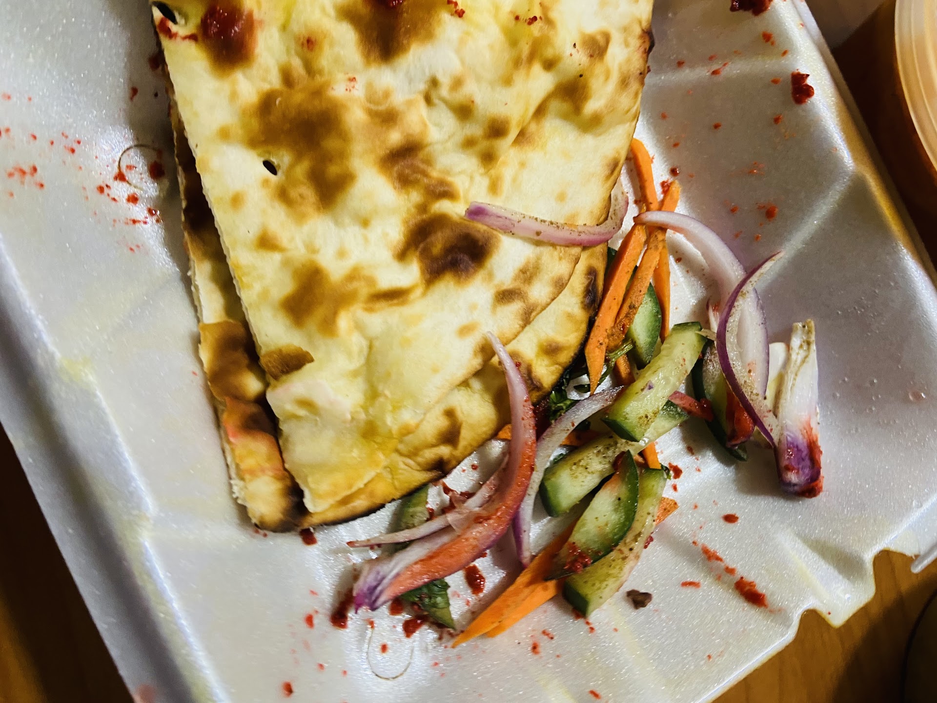 And I added cheese ๐ง naan...which was wonderful with my spicy chicken Tikka masala...and lots their wonderful rice! And chai tea too!