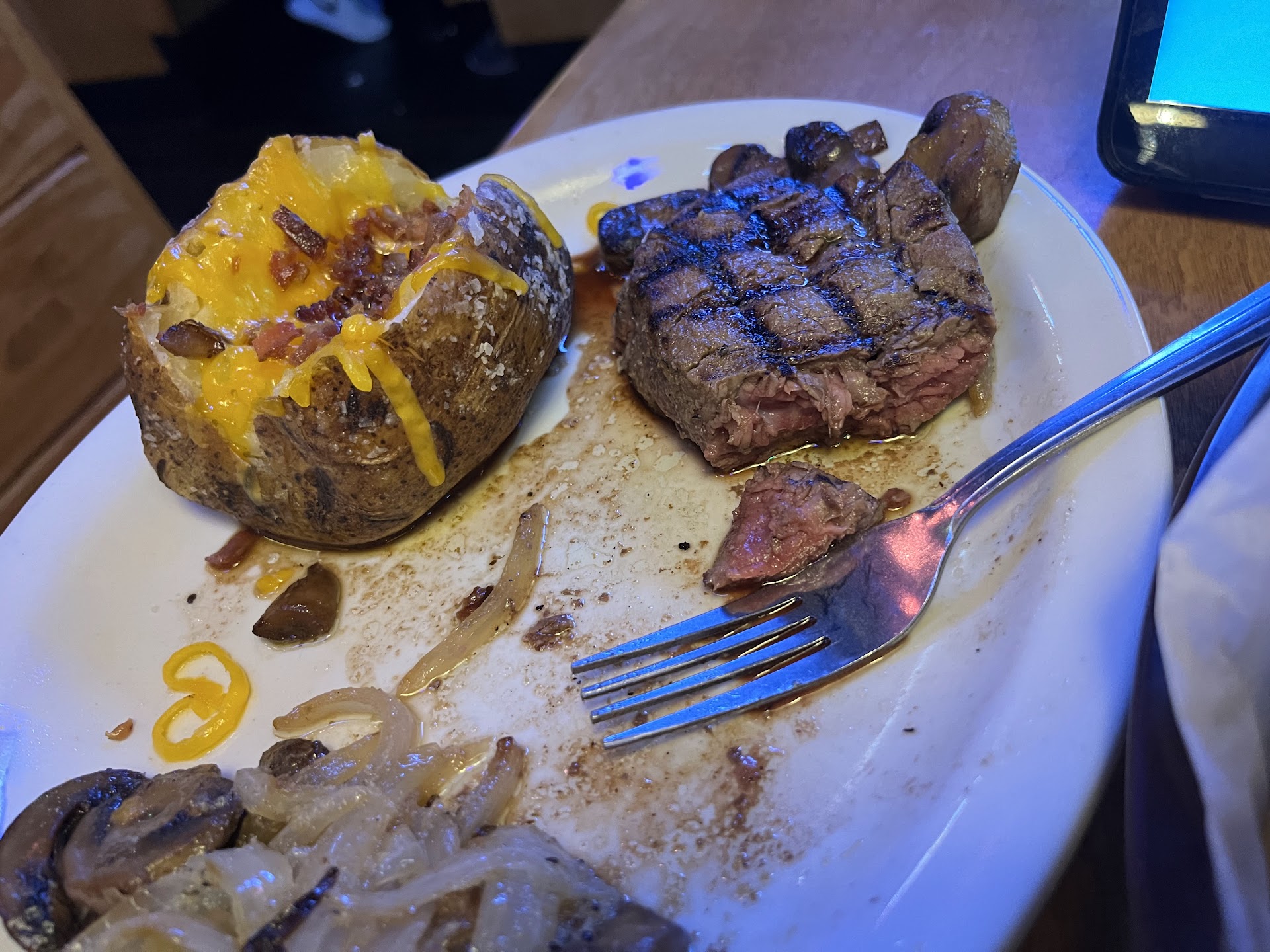 Our server was great! But... the 3 steaks we ordered all came back wrong. I ordered medium and got near well done, and the other two were over cooked. By the time the new ones came back our sides were cold. I do not think this was the servers fault. The manager came back and said the "kitchen was struggling" understandable but 3 steaks at one table wrong?? No compensation at all by the manager was wild to me but we were so ready to get out of there it wasn't worth asking.