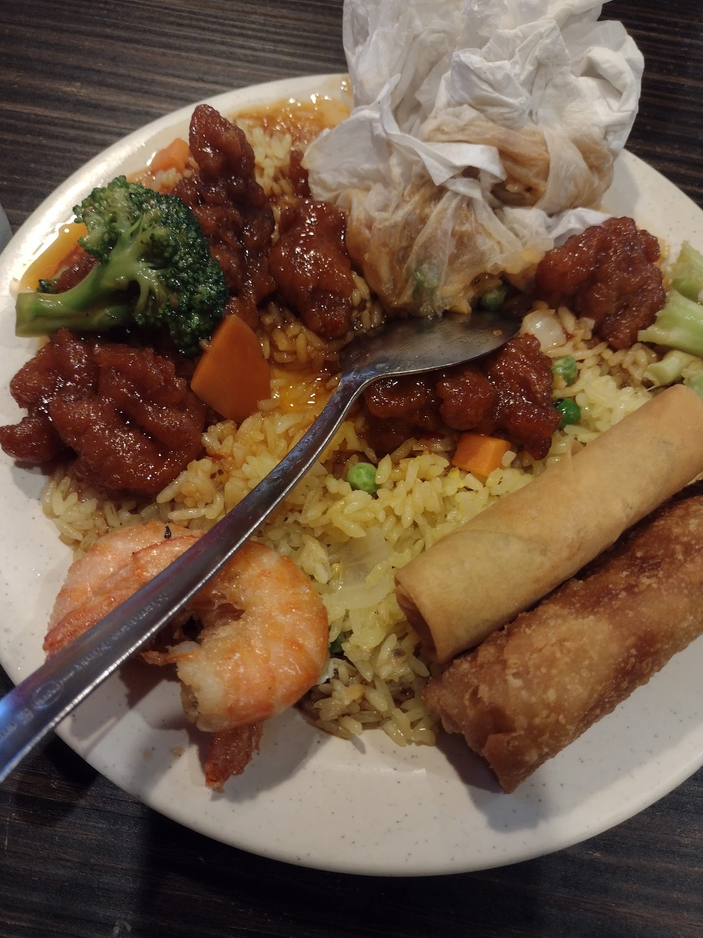 Read moreDONT DO IT. My last review for them was a four star and It just gets worse as time goes on. It's even more expensive now, but the food hasn't changed. $17.99 for 1 person is severely overpriced. The food was disgusting. Old dried shrimp mixed with fresh. The shrimp wasn't deveined, and was like a piece of leather. The general pso tasted sour, even the after taste was stomach churning. I almost got sick. The lady I was with said hers had grey looking meat (Beef) mixed in with what looked like fresh so she was finished soon after also. After 2 uneatable bites and spitting it back out. I brought it to the waitresses attention. I didn't want it free but after paying and not eating it was a waste of money. Mine not theirs. Waitress just stood there apologizing but that was it. No manager to fix it or anyone. Don't waste your time or money like I did. Paid for lunch but left hungry. Pics attached for proof. Called and I got answered so I proceeded to tell him about my experience and he tells me that there wasn't even a manager on duty a manager until 4:00 which is why no one came to talk to me. Then lied and said they change the food every hour but when I said I watched a guy come out of the kitchen and pour fresh food on whole food he said we're not going to throw away food is that what you want us to do and I said yes especially if it's grey looking when you bite into it and he replied back no way. Rude and unbothered he said I should have told someone there not call so I said I did I told the waitress who took it to the kitchen and I never saw her or anyone else (I.e a manager) and as soon as I said that he hung up on me, while I was still talking because I mentioned how dumb to have a restaurant open with no manager on duty for when things like this happened. Don't waste your money or time. Or go right after they open so you're not getting fresh mixed with Lord knows how old. I can't believe this place is still open. I'd rather eat at the one on Summerhill rd and that's saying alot since I haven't been back in after...