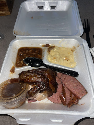 Read moreMy son and I chose this place because it was close to our hotel. We decided to go in and ask for a menu to see if it was something we wanted or not. The 1st lady we talked to was very helpful but simultaneously I there was a slightly older woman who was abrasive and short in her interactions with customers. She wasn’t the worst person in the world but it was very noticeable. We boughtt 2 4 meat platters that each came with 2 sides. My son got the ribs, turkey, chicken and brisket w/ green beans and Mac & cheese. He did not enjoy the green beans as they were vinegary, but love the assortment of meat. I had the ribs, brisket, chicken and sausage. The chicken and ribs were delicious. The briskets was middle of the road and the sausage was the same. I got the “Cajun “ potato salad which was hardly Cajun just a lot of mustard and the fried okra was delicious! I would go back but only as a last option. I even asked the unfriendly woman for another small bbq sauce and she replied “usually it’s an extra charge but I’ll see if there’s still some out.” I mean we were there only ones there and it was about to close… not a good way to make and keep customers. Very clean place and roomy with at least one tv on. I guess it just depends on how you value...